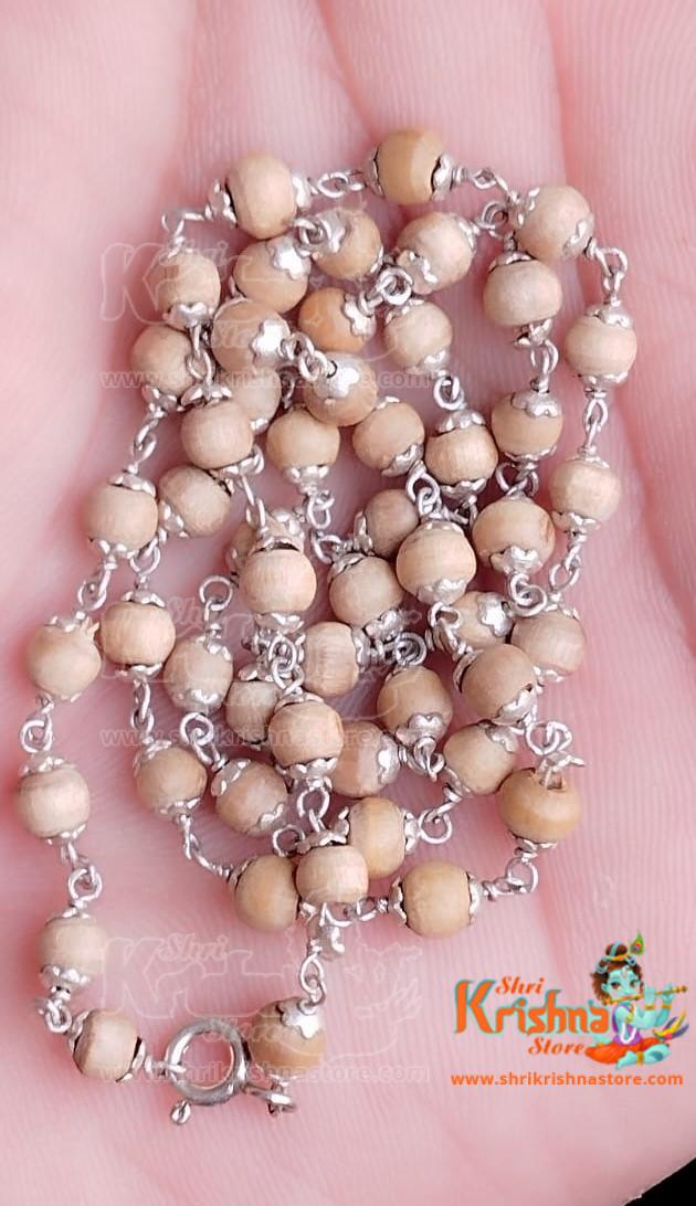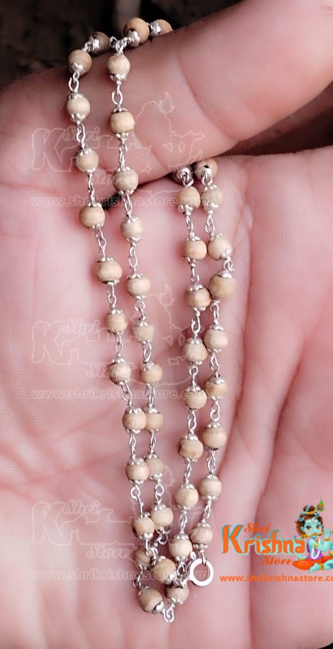 2 mm Silver Flower Capped Tulsi Beads Kanthi Mala – Classic / Elegant
