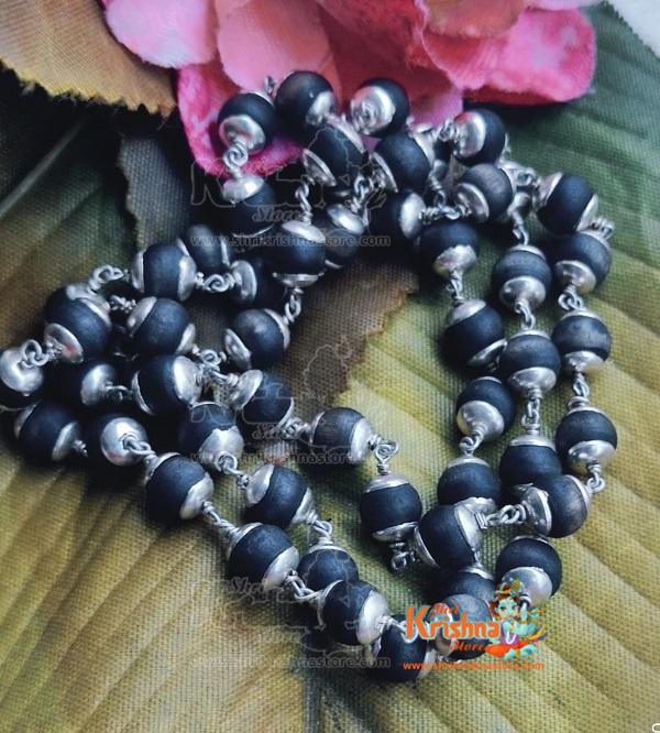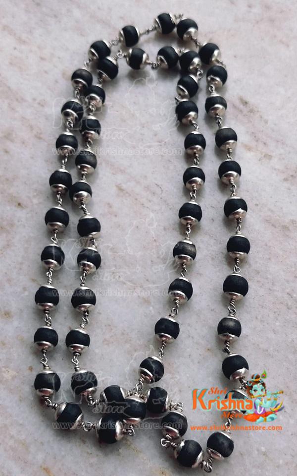54+1 Beads Tulsi Mala in Silver with Silver Caps – Premium
