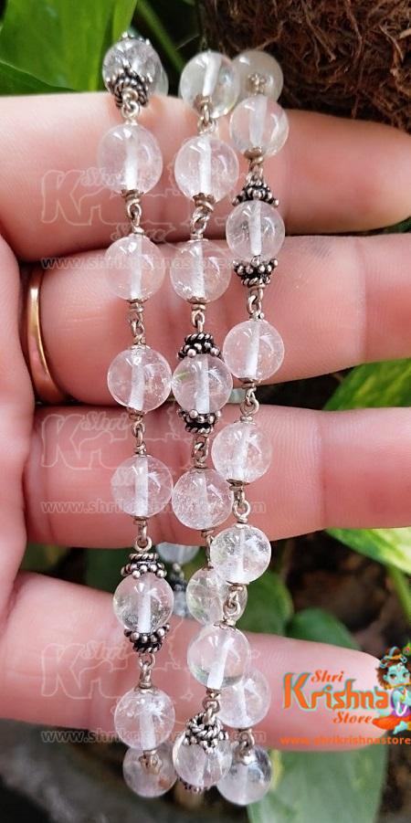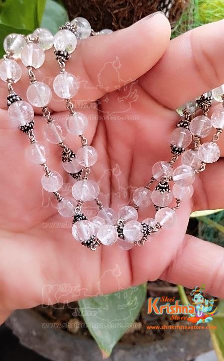 54+1 Sphatik Beads Mala in Silver With Silver Caps – Premium Quality