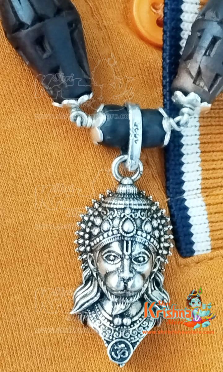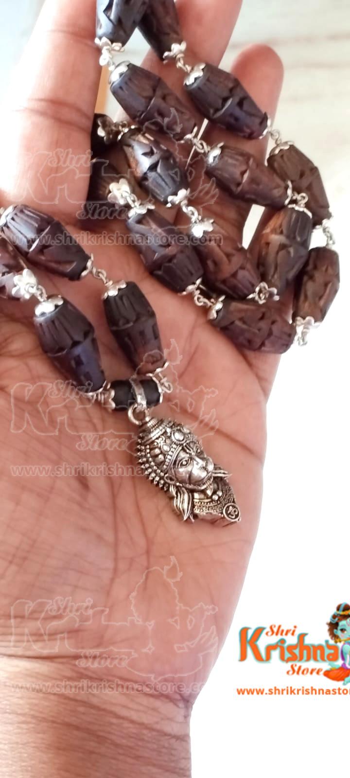 Bajrangbali Hanuman Ji Silver Pendant with ram carved Tulsi Mridang Mala.