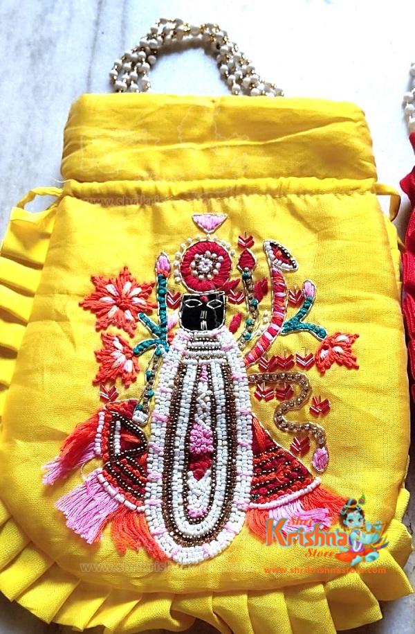 Banke Bihari Ji-Beautiful Design Embroidery Potli Bag