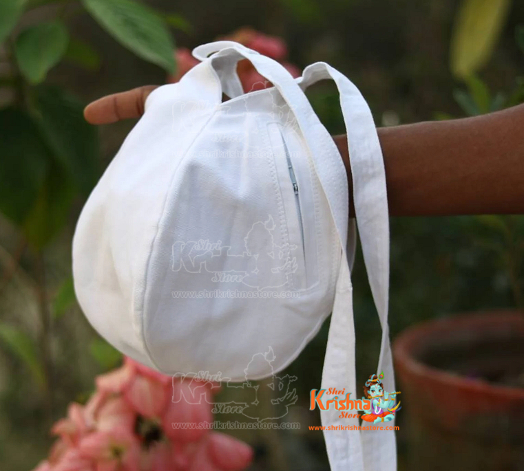 Beautiful Cotton White Japa Gomukhi, Prayer Bag, Chanting bead bag