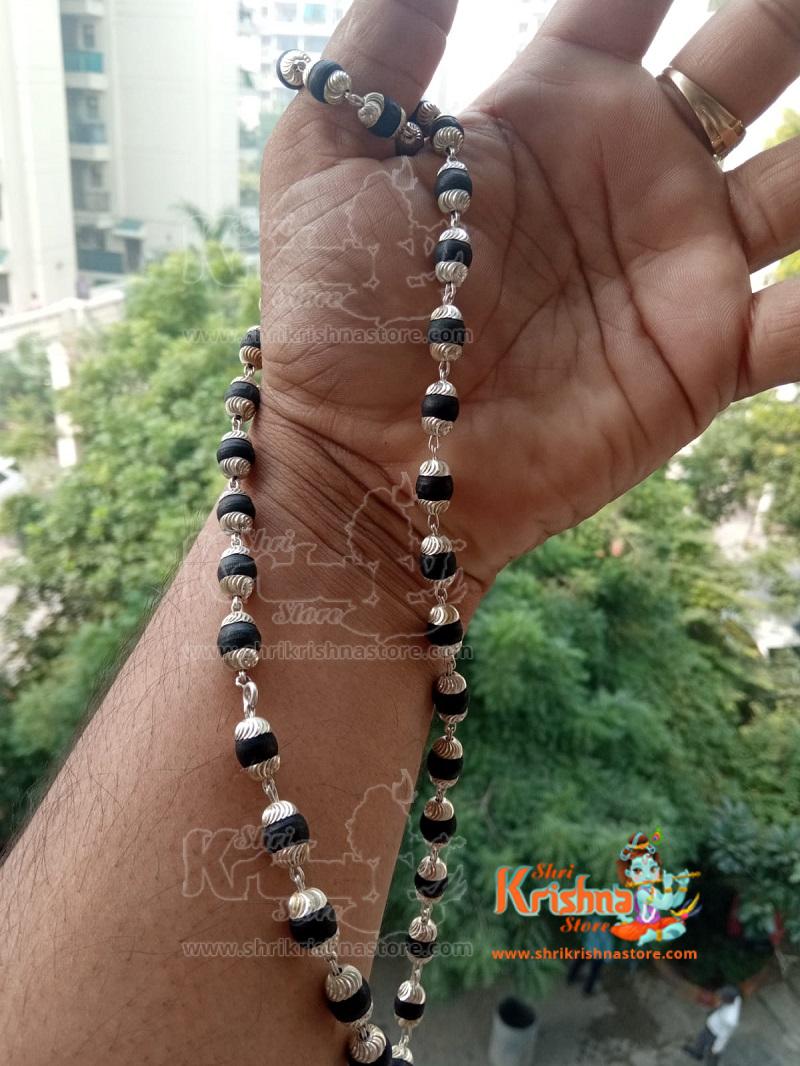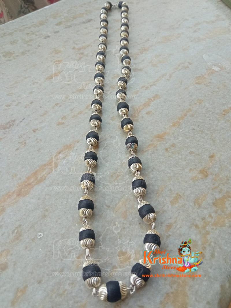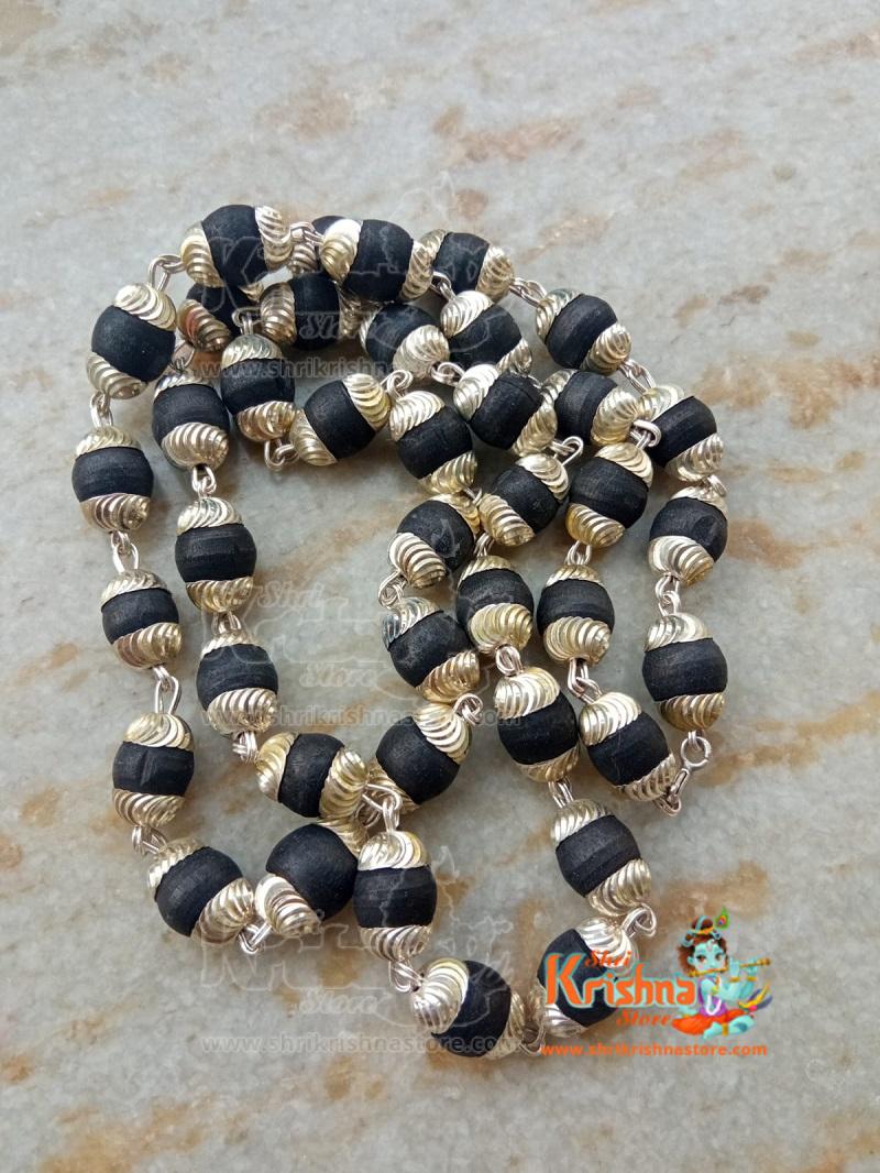 Black Shyama Tulsi Mala In Silver Cap – 54+ 1 Beads – Premium