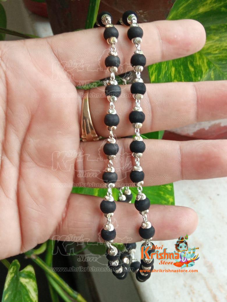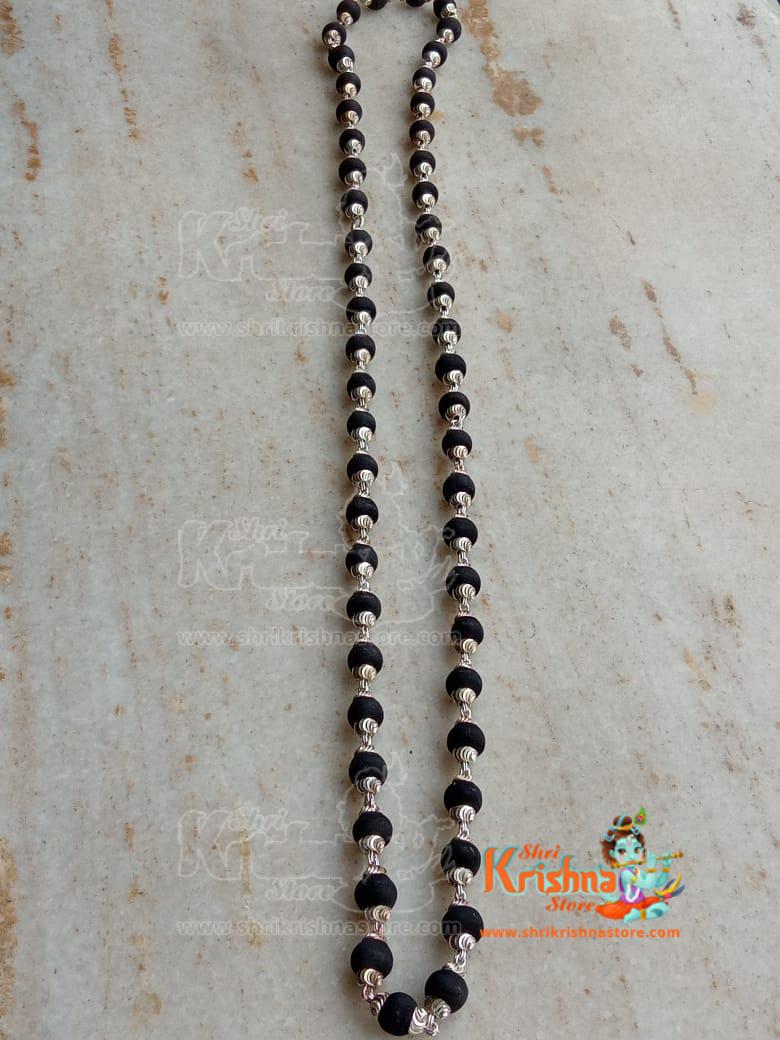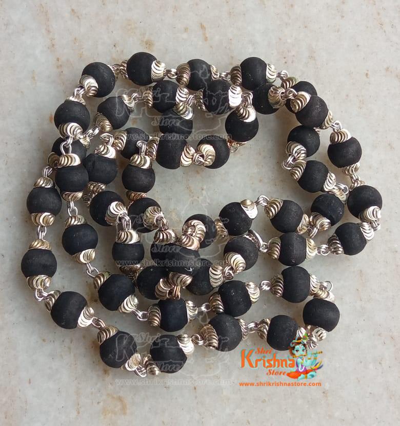 Silver Capped Black Tulsi Beads Kanthi Mala – Premium
