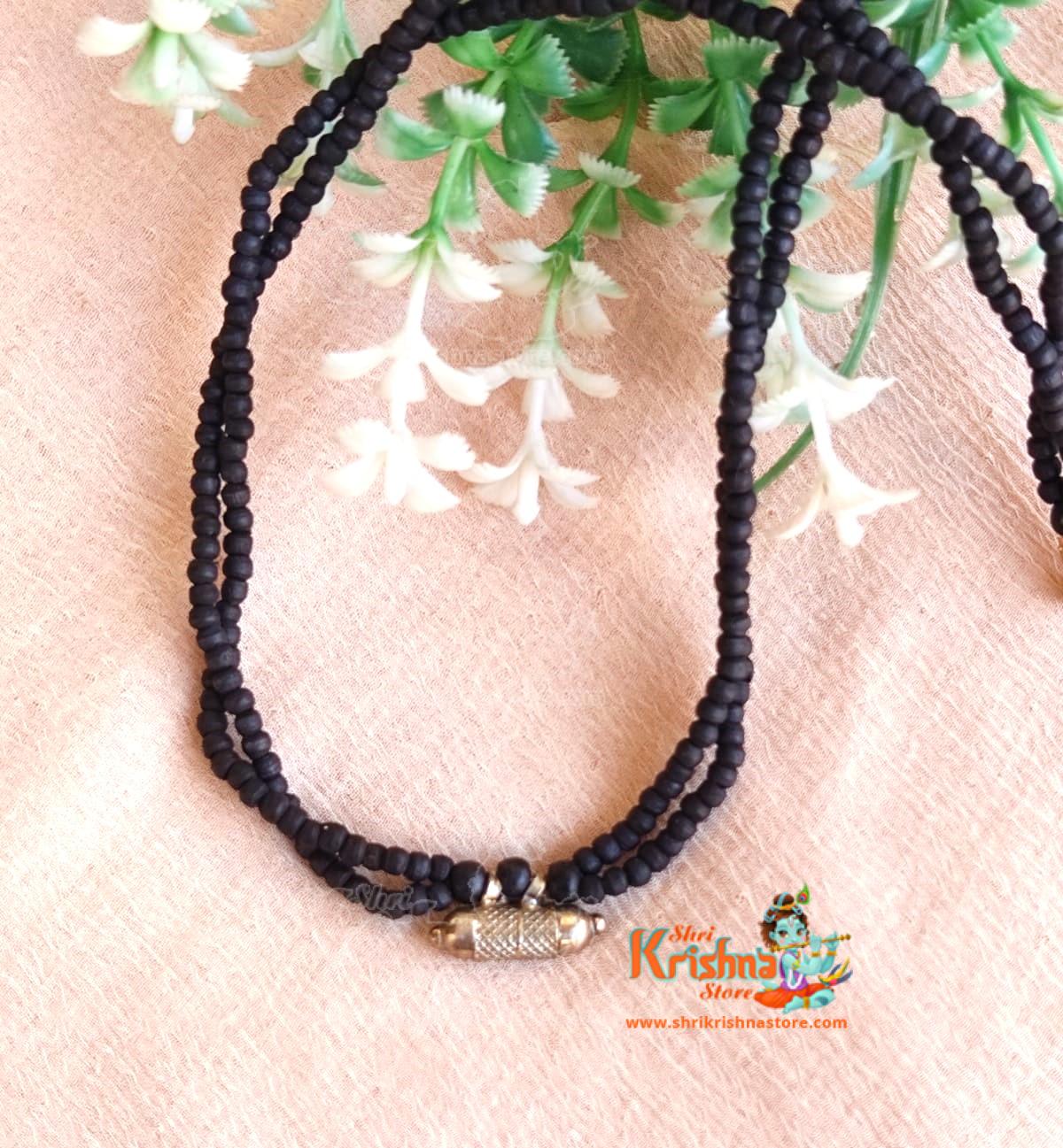 Black Tulasi Kanthi Mala With Silver Narasimha Dev Kavacha