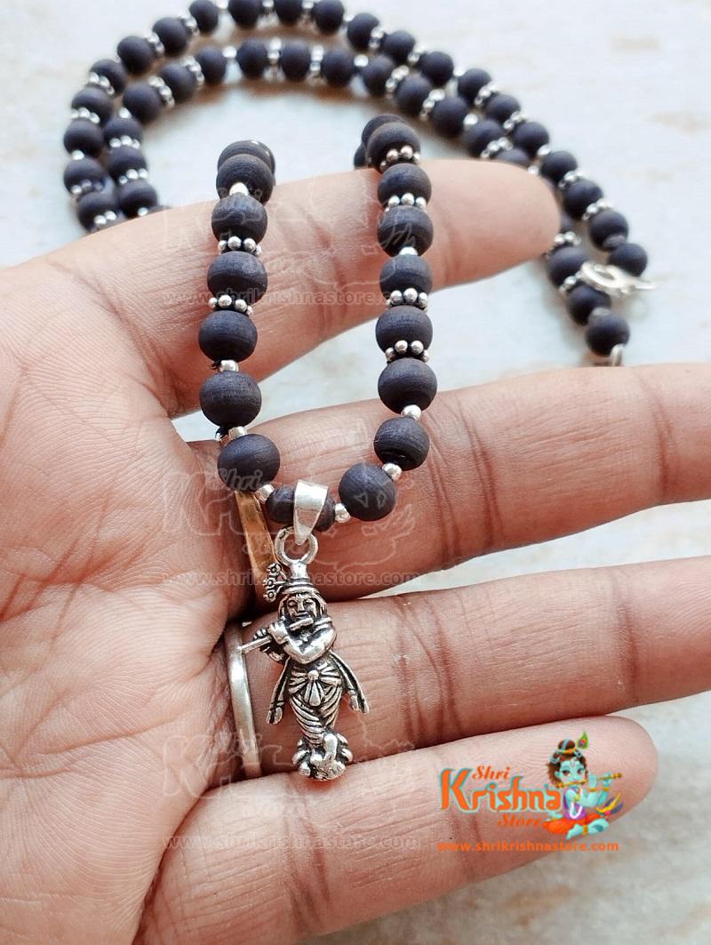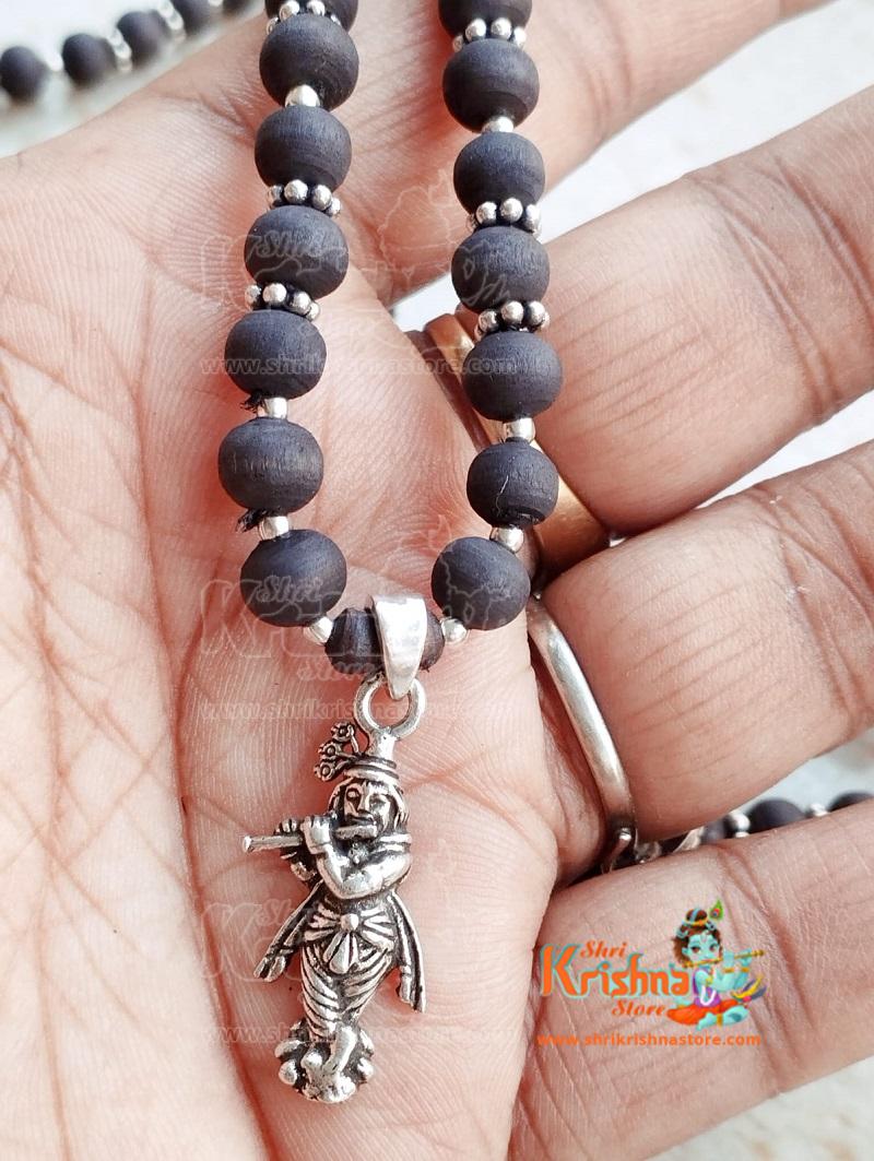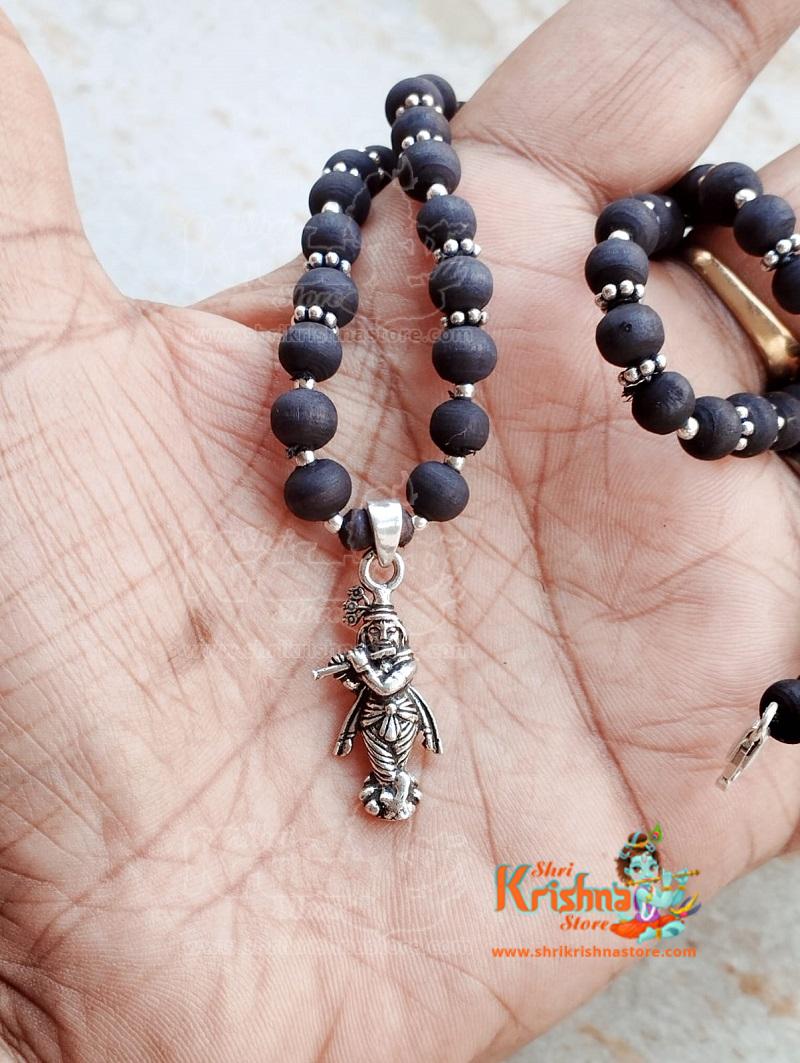 Amazing Krishna Blessed Tulsi Mala In Silver And Dark Tulsi