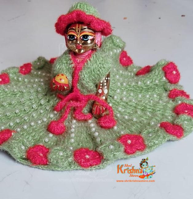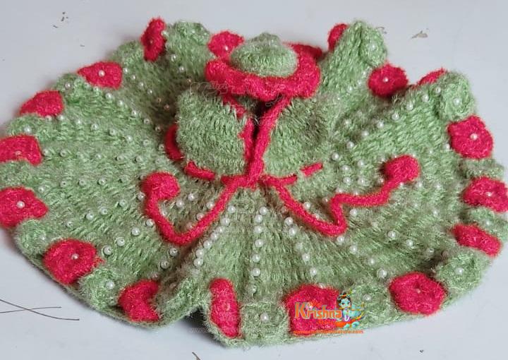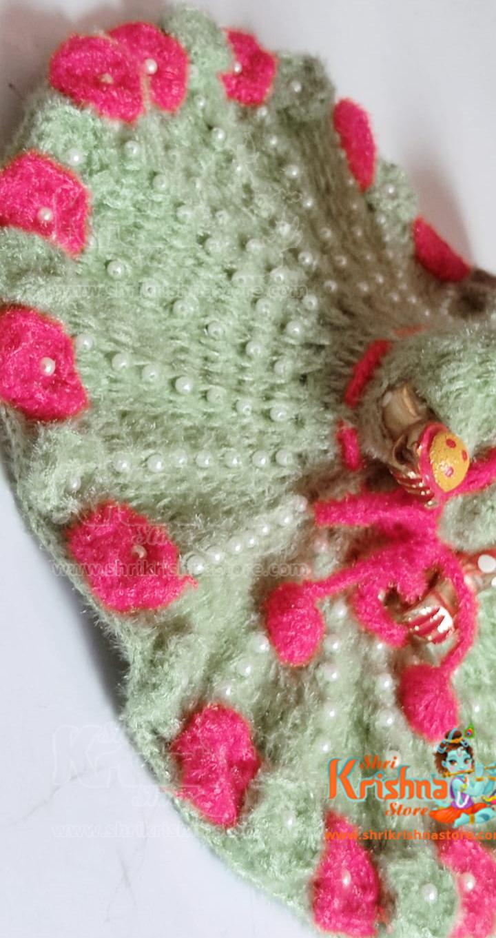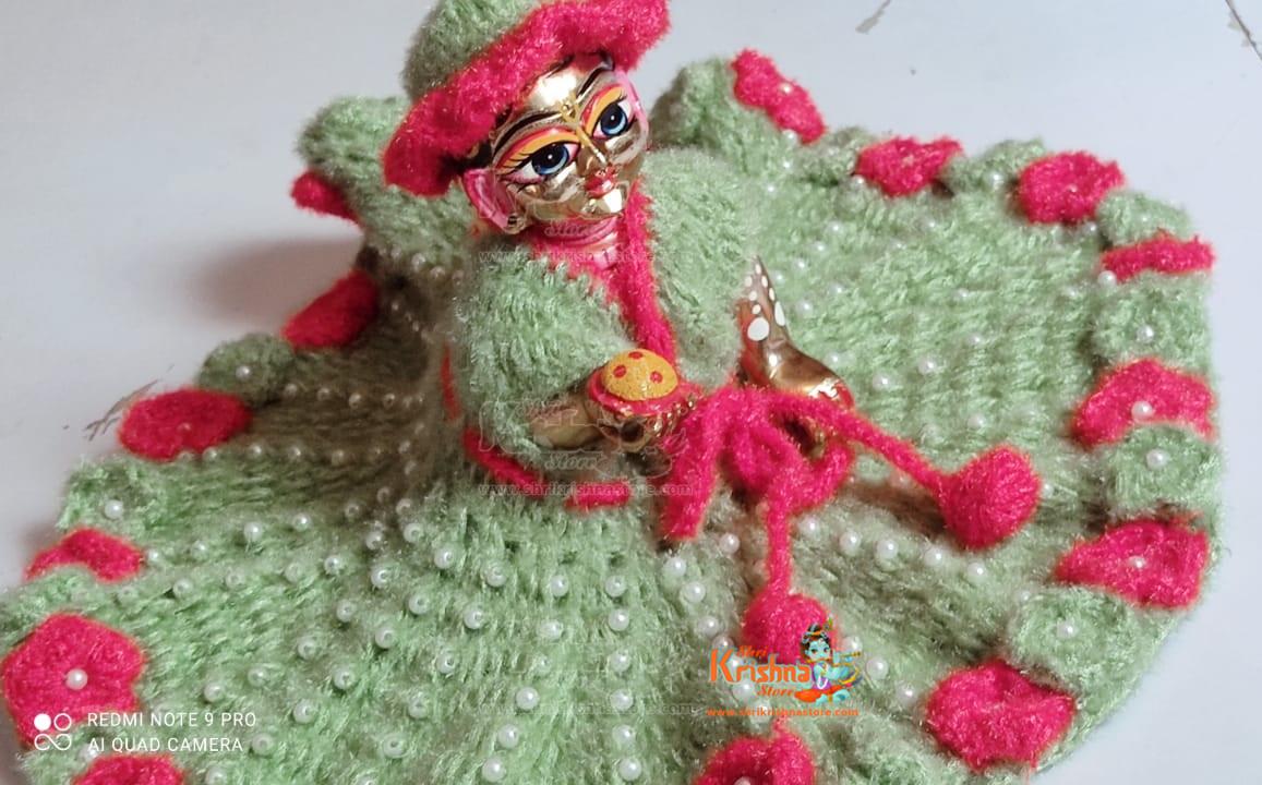 Bottle Gourd Green and Red Color woolen dress for little Gopal