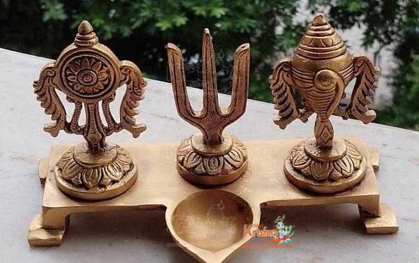 Brass Handcrafted Vaishnava Symbols Shankh Chakra Nama