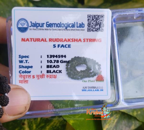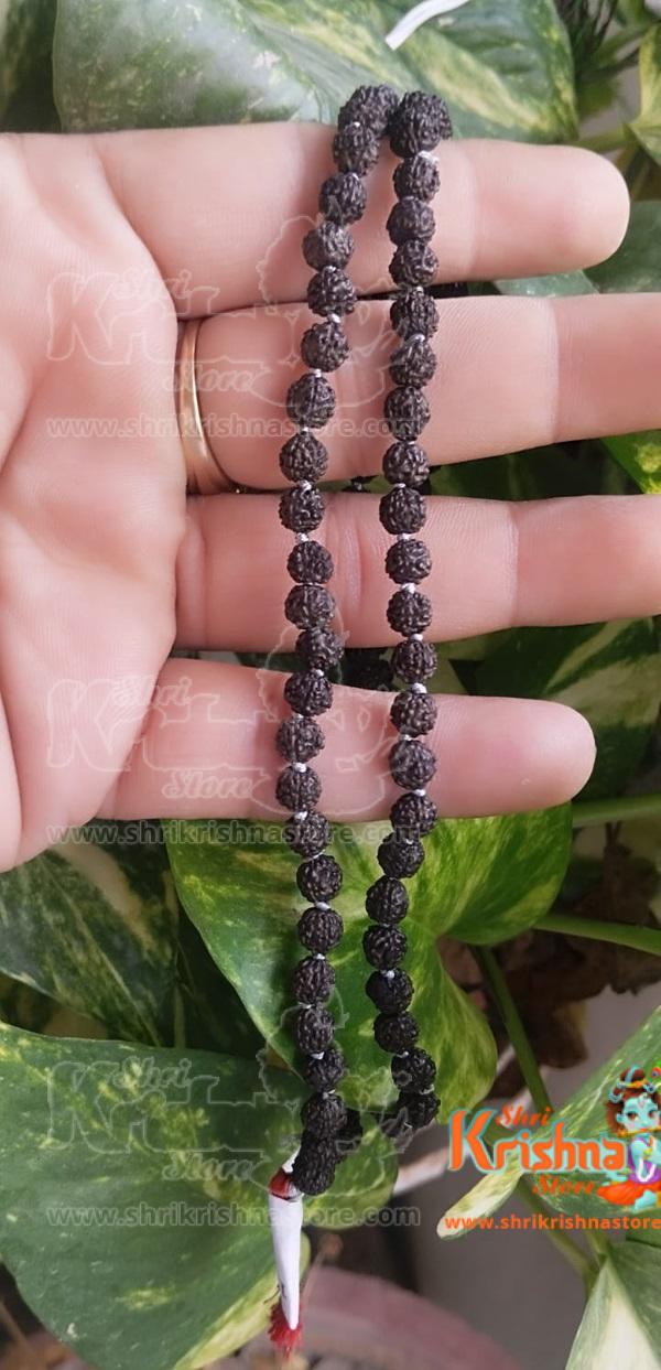 Certified 5 Mukhi Black Rudraksha Mala 7 mm Beads for Jap and Neck Wear