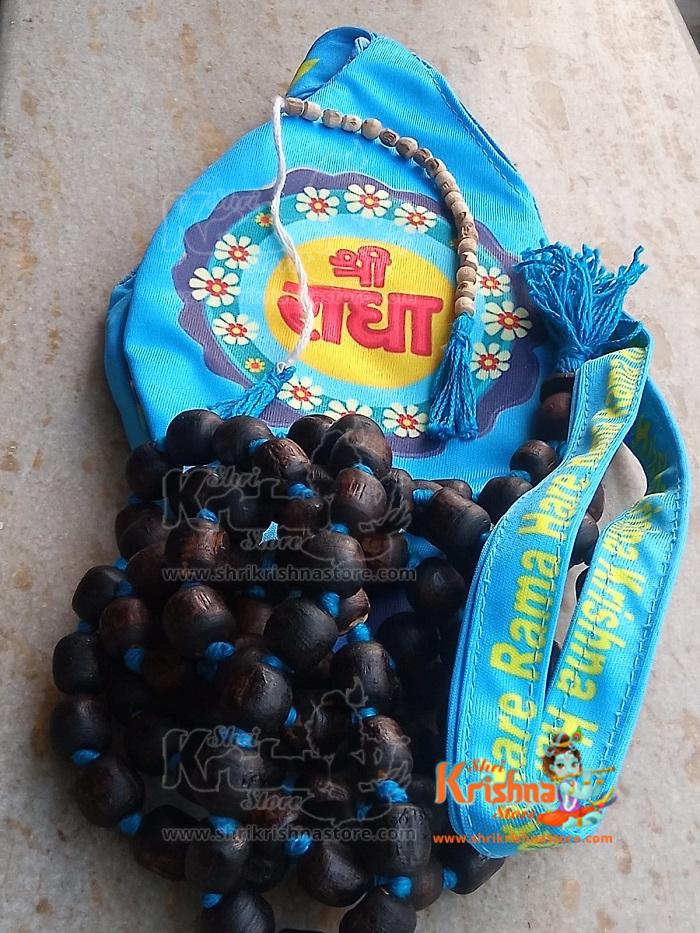Complete Mala Set Includes Black Shyma Tulsi Japa Mala, Counter Beads And Japa Bead Bag