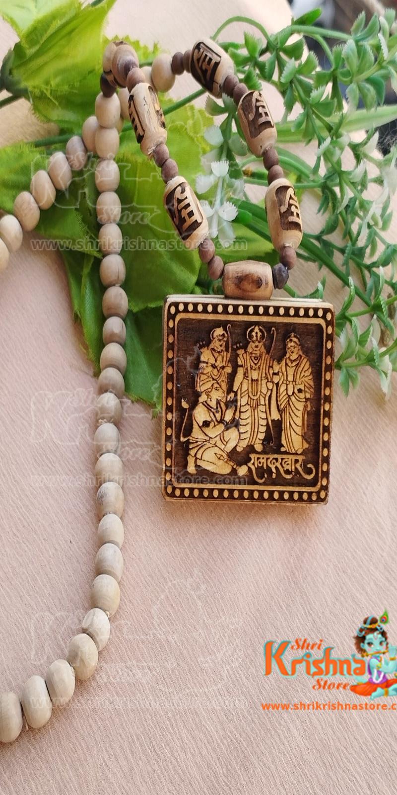Double Sided Bageswerdham Hanuman Ji And Ram Parivar Tulsi Locket Mala
