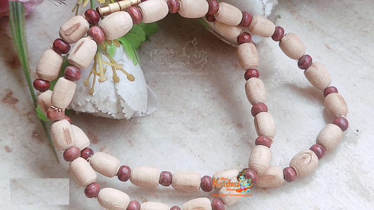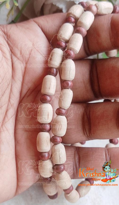 Fancy Dull Cream-Maroon Tulsi Beads Mala