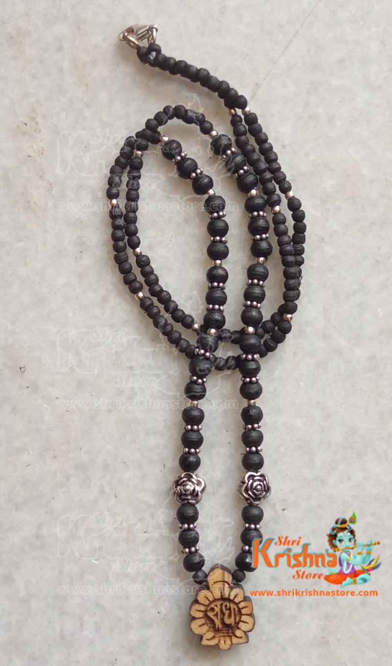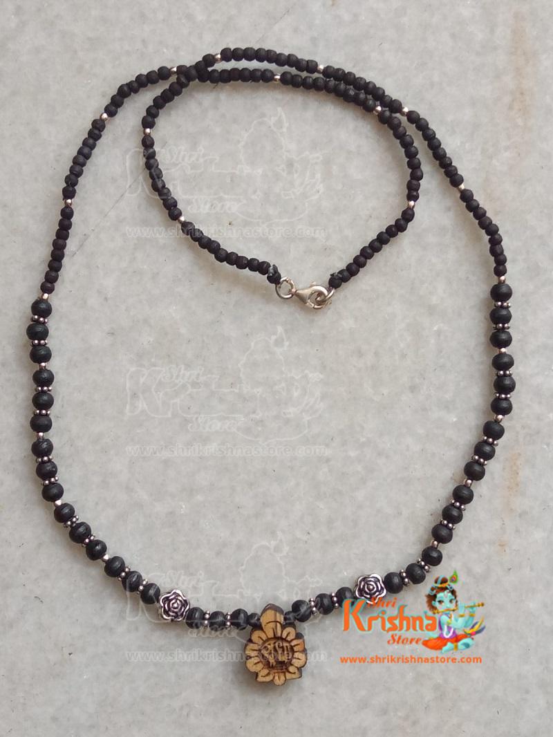 Flower Design Tulsi Locket With Silver Kanthi Mala