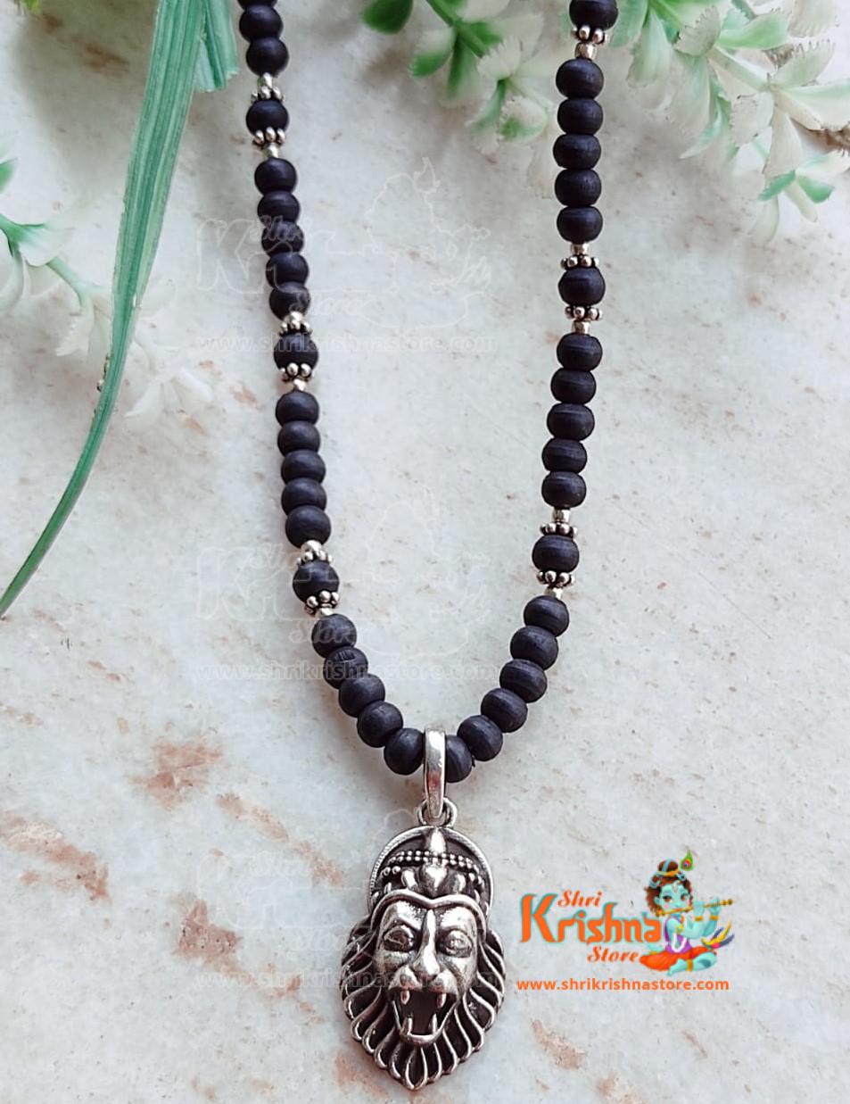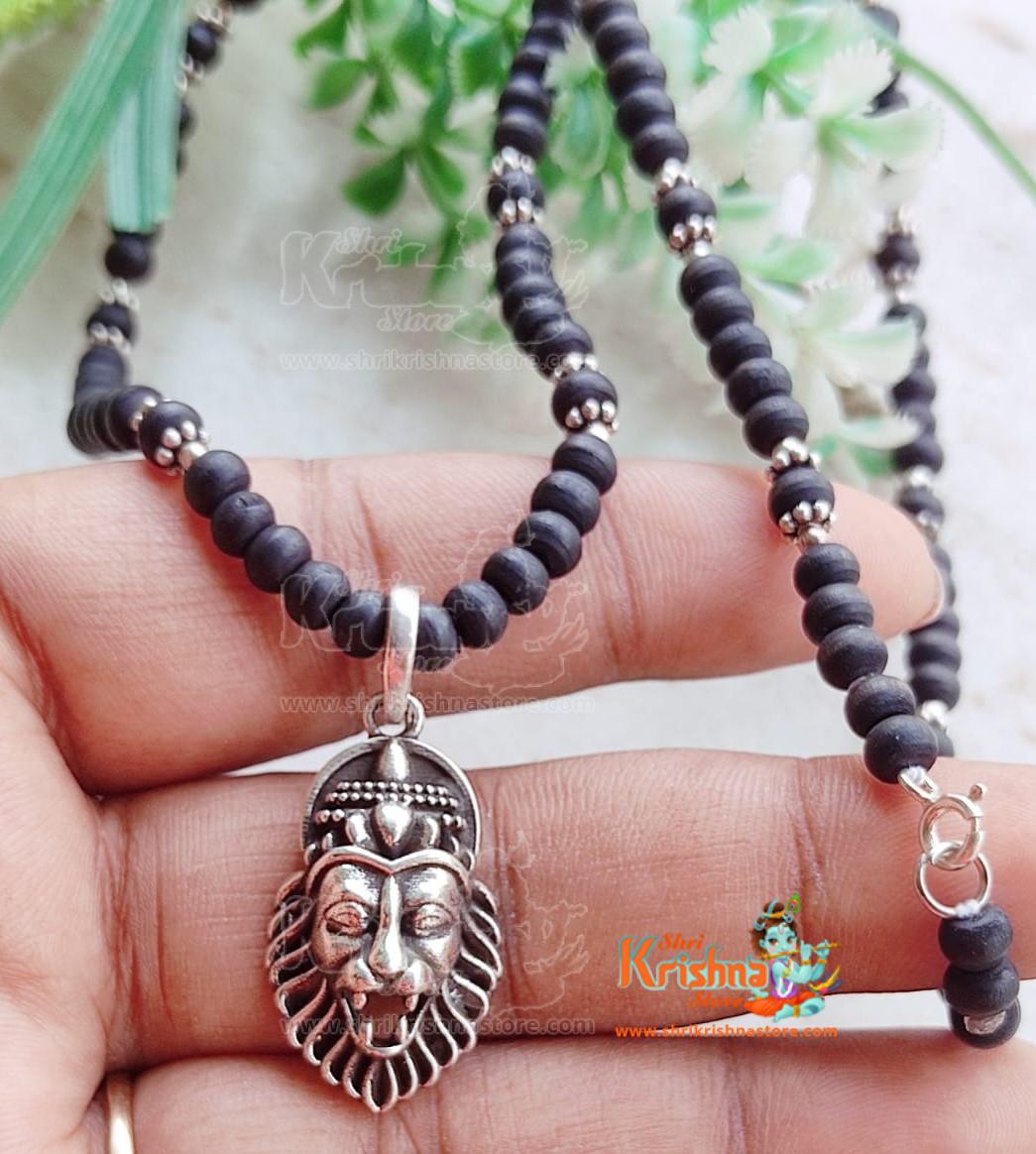 Flower Silver Capped Round Beads Tulsi Kanthi With Sterling Silver Divine Narasimha Pendant