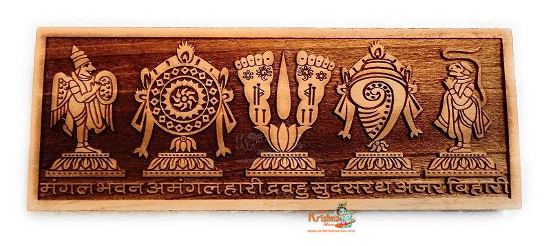Garud Shank Chakra Wooden Plate -Naam Sewa for Home Temple