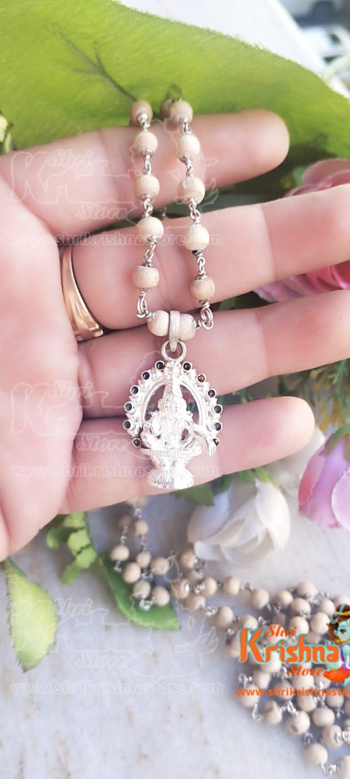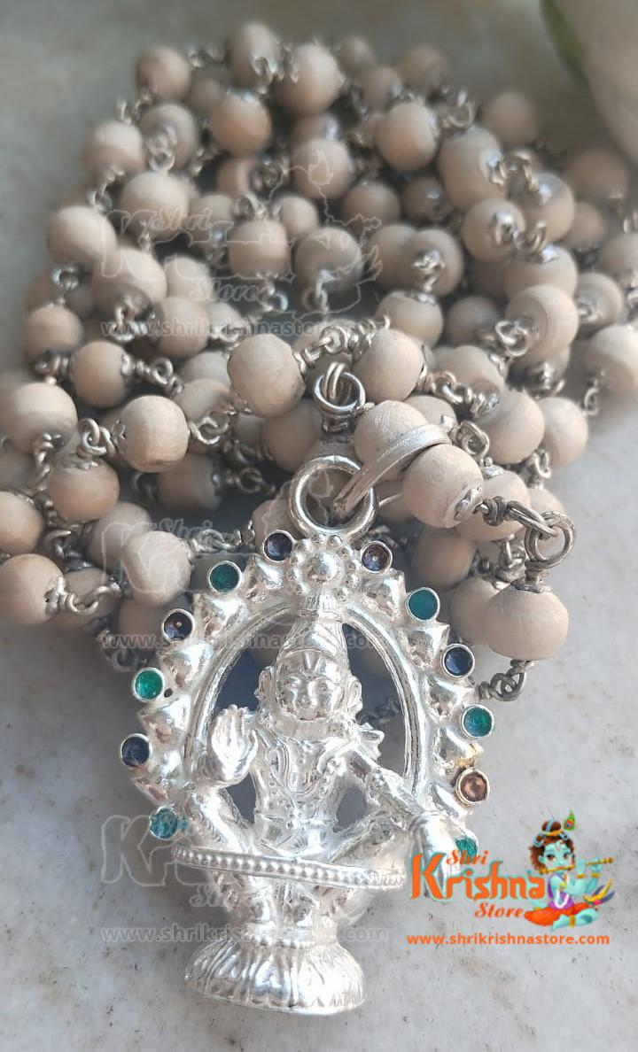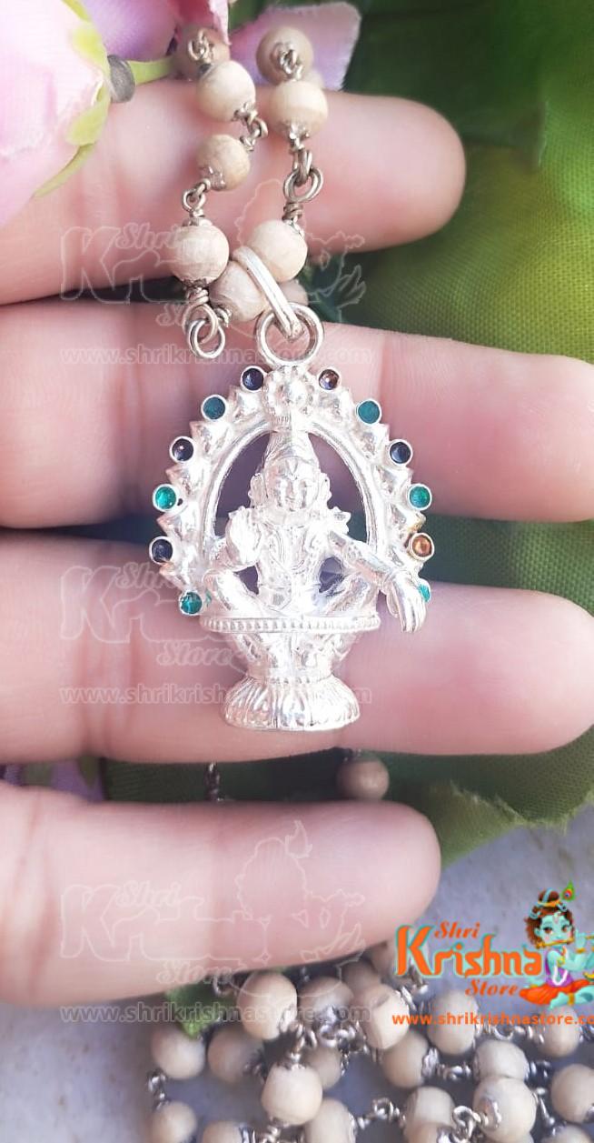God Ayyappa Swamy Silver Pendant with 108 Tulsi Mala in 92.5 Sterling Silver