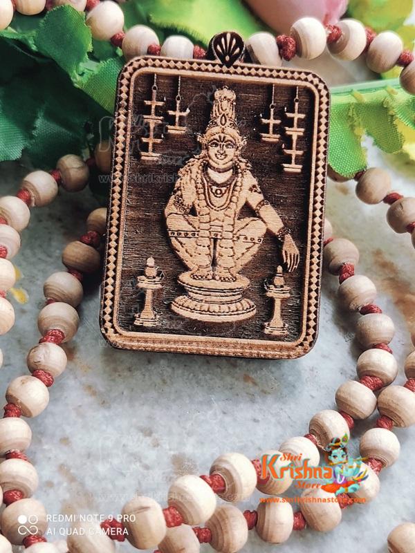 God Ayyappa Swami Pendant With Knotted Tulsi Beads Mala – Premium