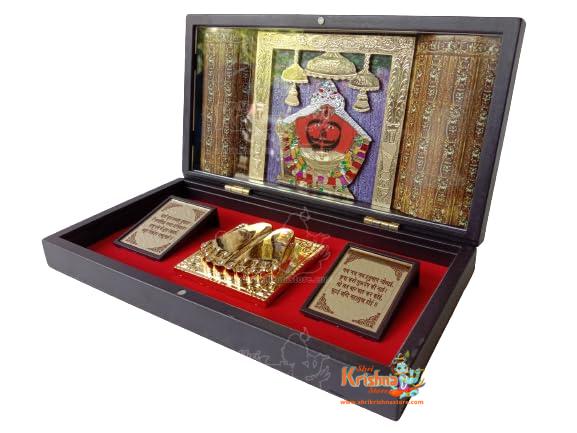 Brass Blessing Gold Plated Lord SALASAR Balaji Pocket Temple – an Unique Collection – Puja Worship Home Decor