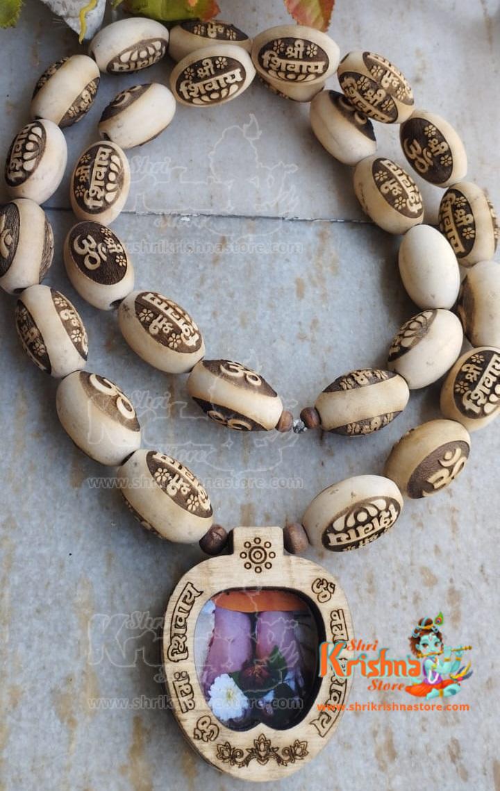 Guru Charan Tulsi Locket Mala with Om Namah Shivay Carving Beads