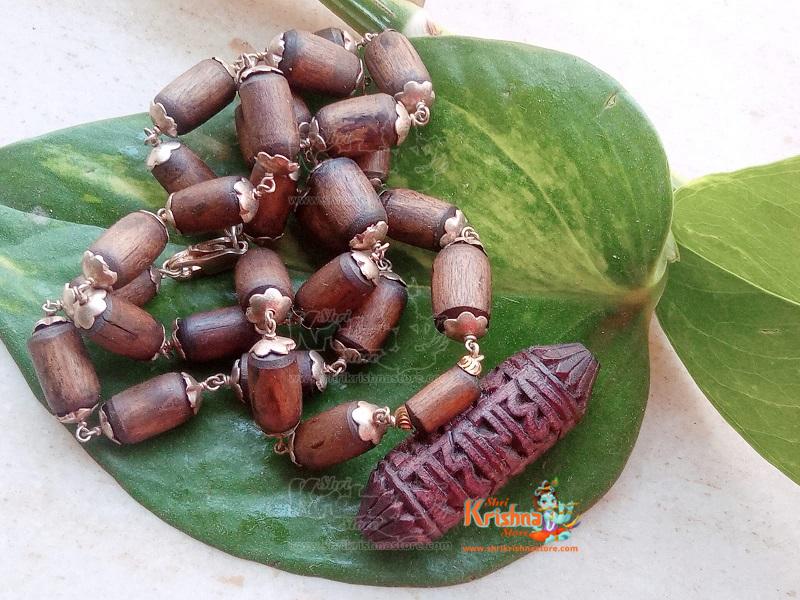 Handmade Radha Locket Wtih Silver Capped Tulsi Beads Necklace – Classic / Traditional