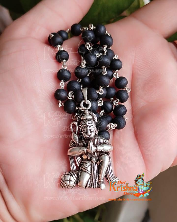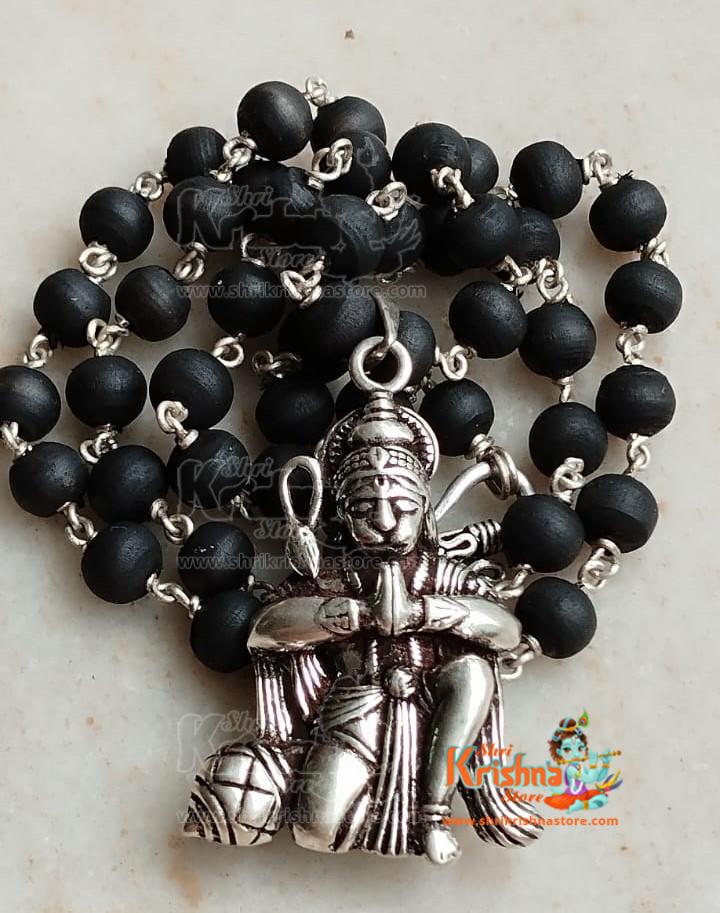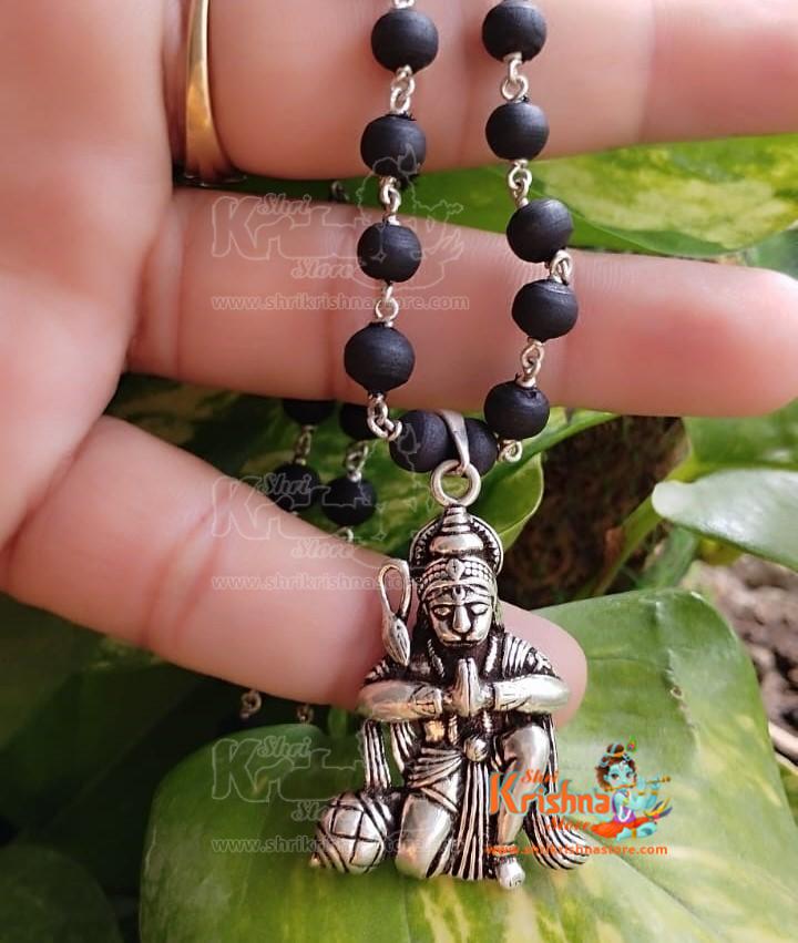 Hanuman JI Silver Shayma Black Round Tulsi Beads Mala for Ram Devotees