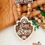 Hare Rama Hare Krishna Bhaktmal Locket With Original Tulsi Wood Shri Ram Krishan Carved Beads Mala
