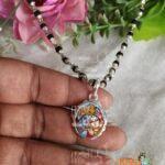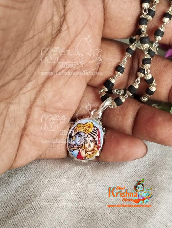Radhe Mohan Meenakari silver pendant with black silver tulsi chain