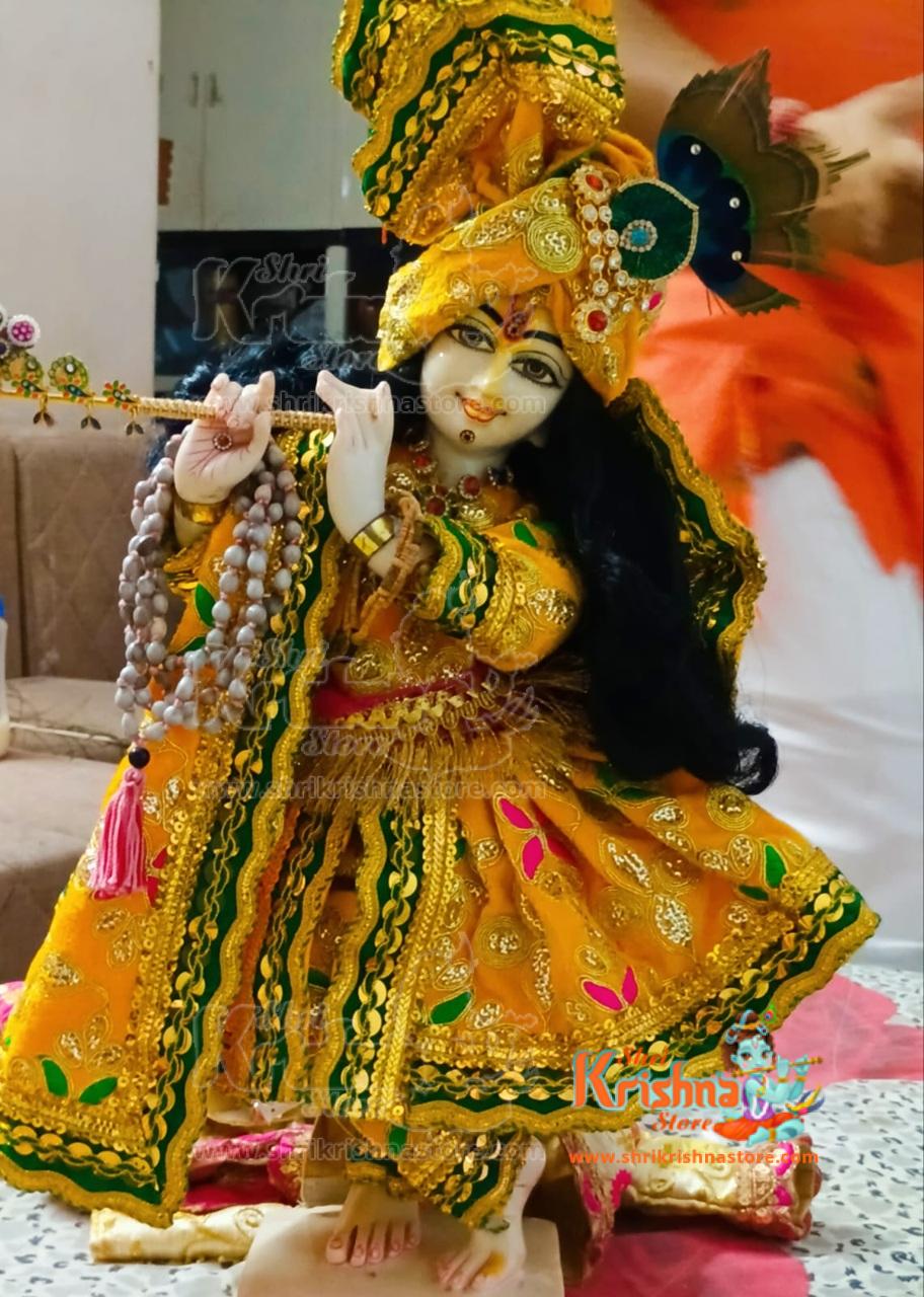 Radha Krishna ji Yellow green dress with shandar Pagdi – Premium