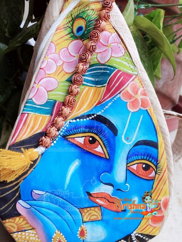 Shri Krishna Hand Painted Japa Bead Bag / Gomukhi and Counter Mala- Super Size / Quality
