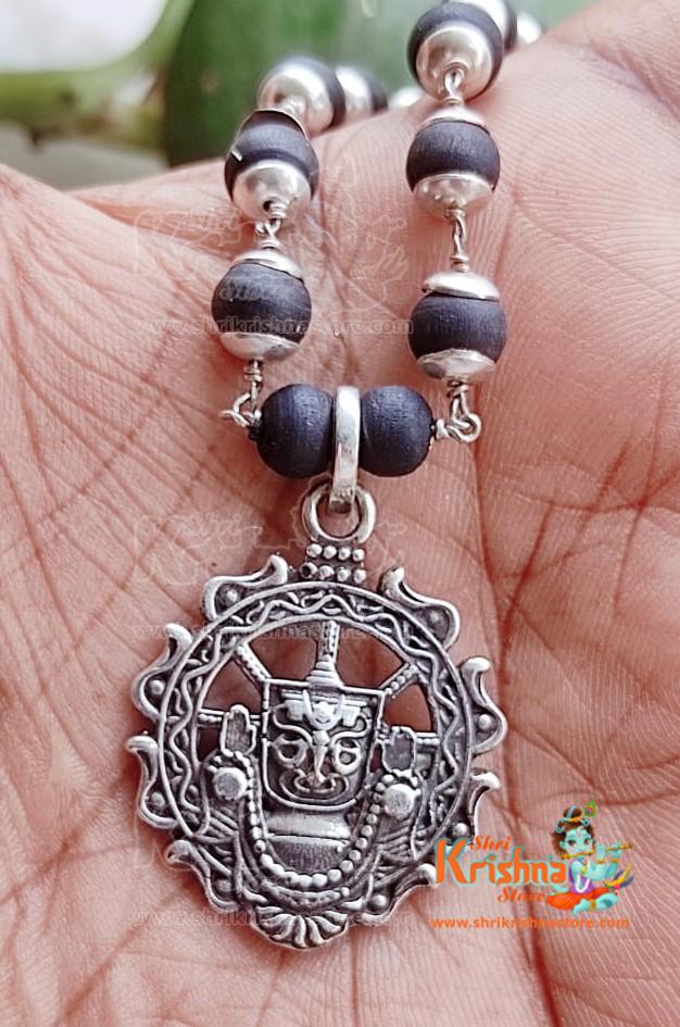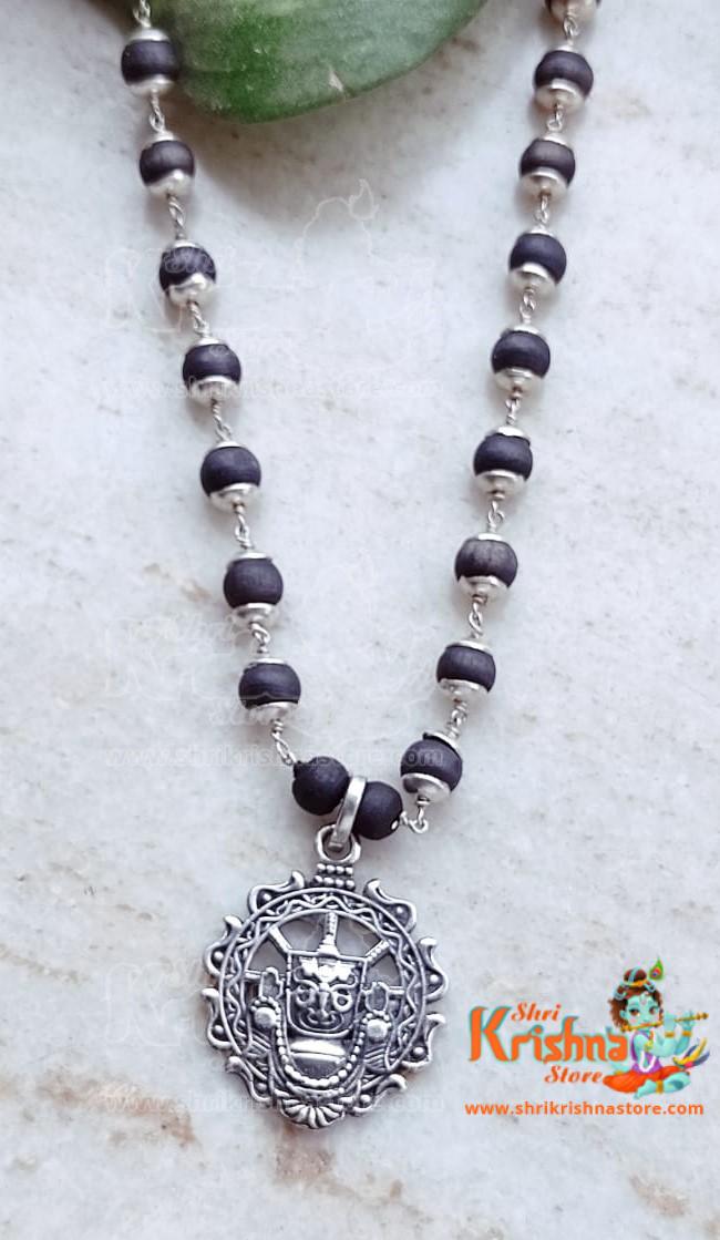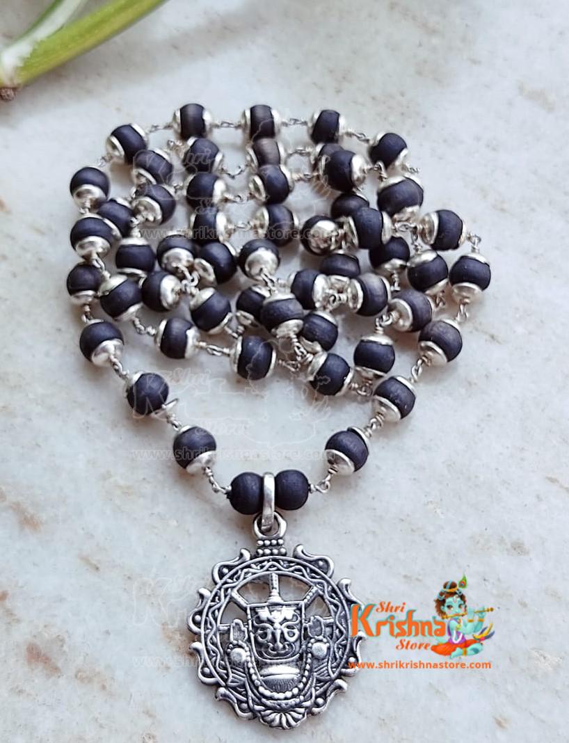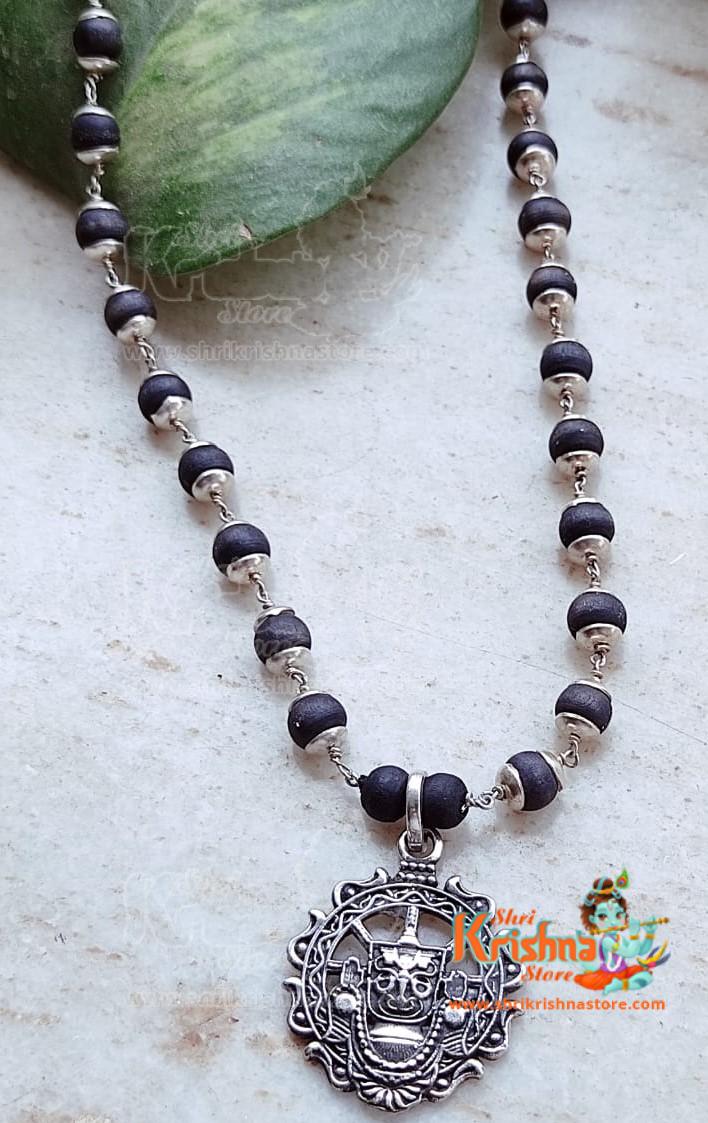 Lord Jagannath Sudarshan Design – Black Tulsi Silver Pendant Mala
