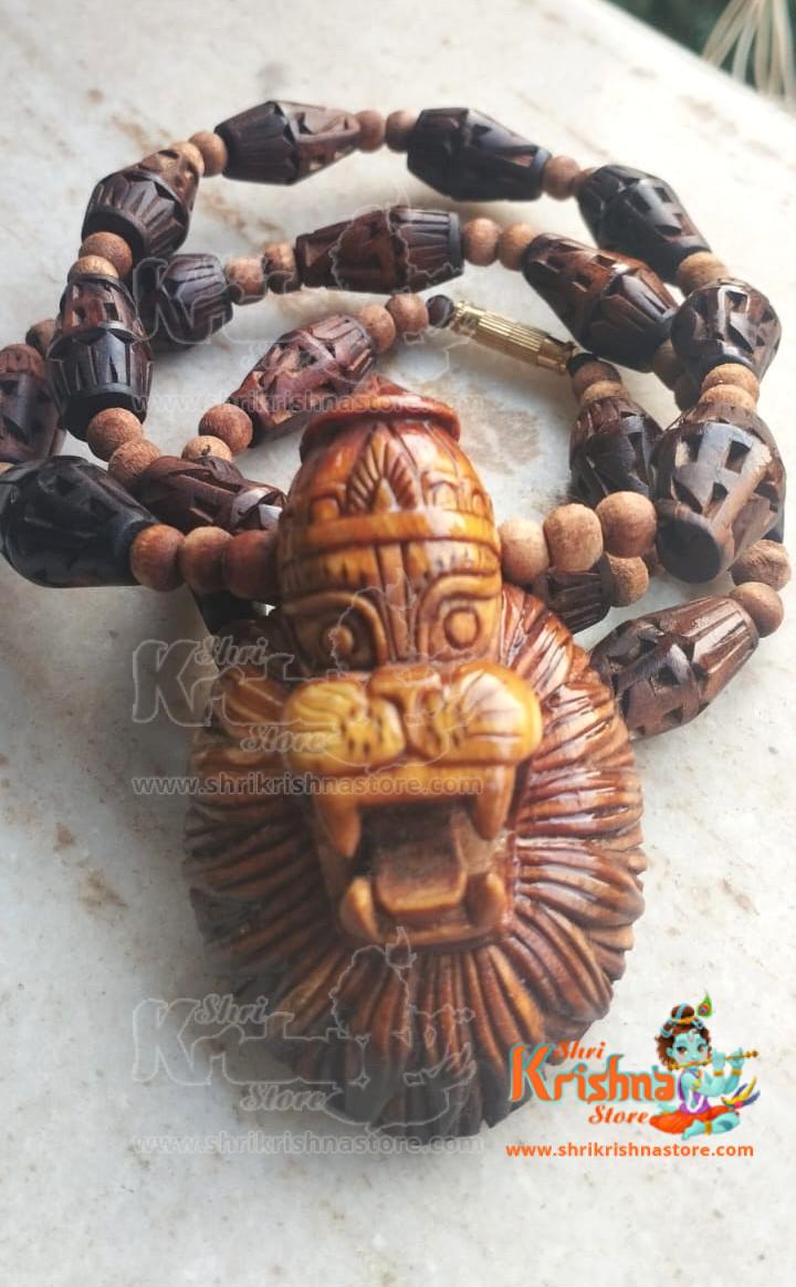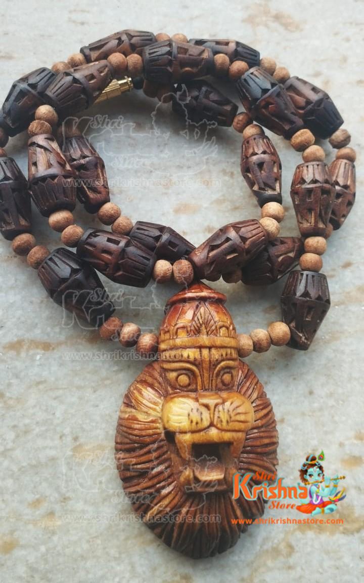 Lord Narasimha Face Locket Original Tulsi Ram Carved Beads Locket Mala