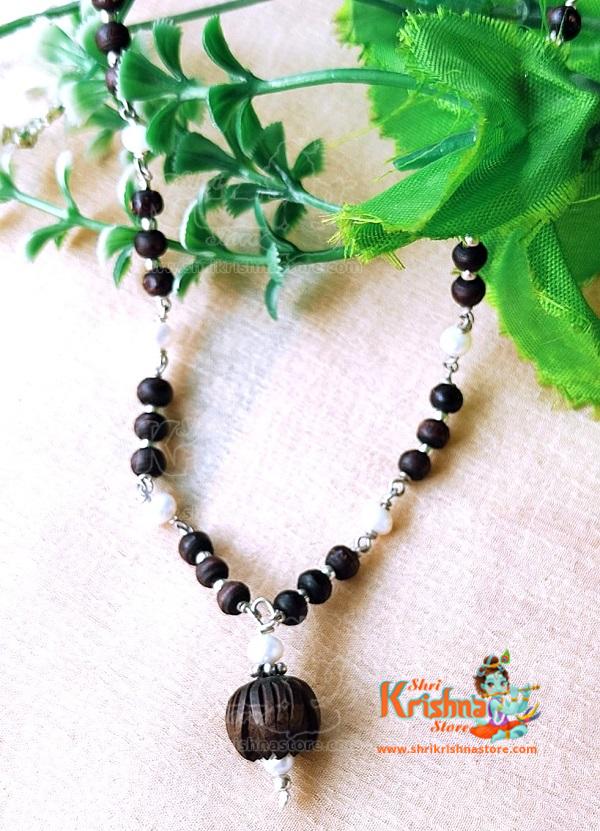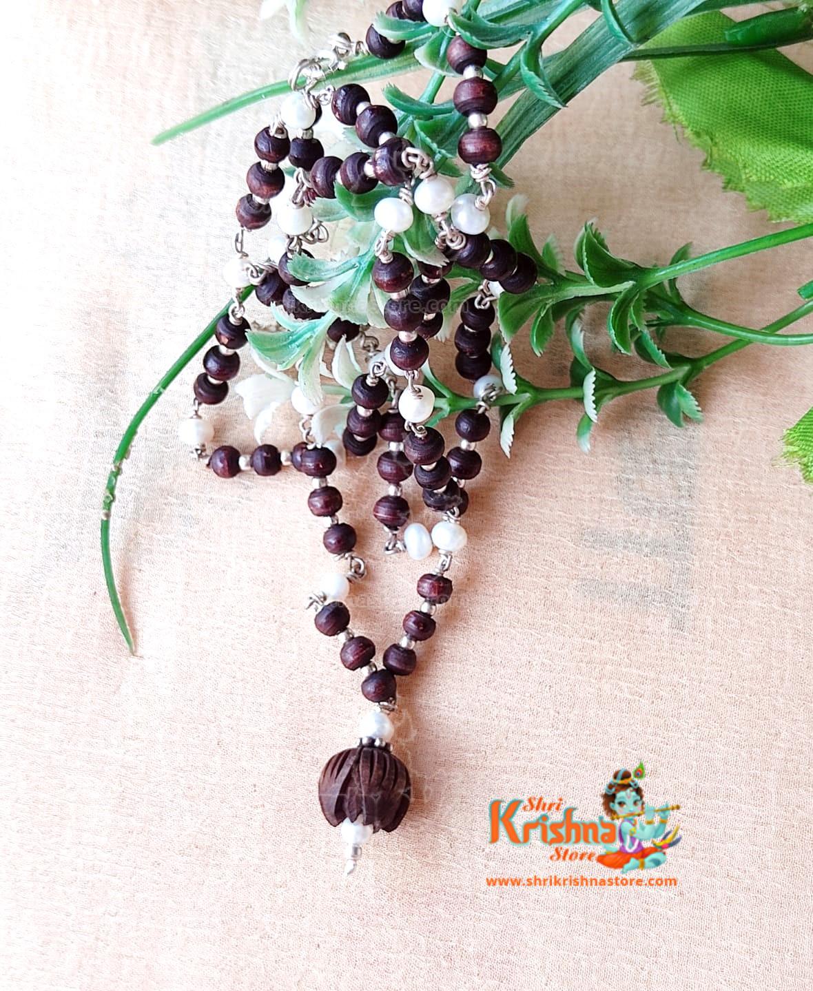 Lotus Beads Silver Tulsi Necklace Kanthi Mala