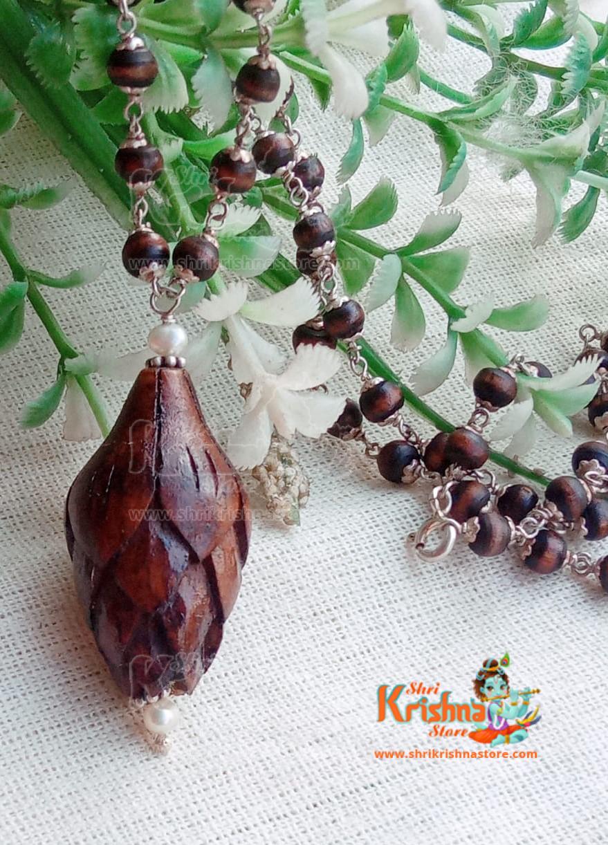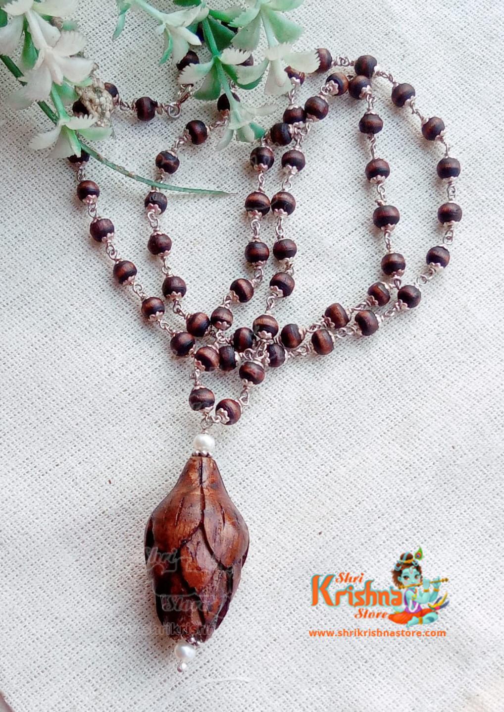Lotus Bud Shaped Pendant Silver Tulsi Kanthi Necklace