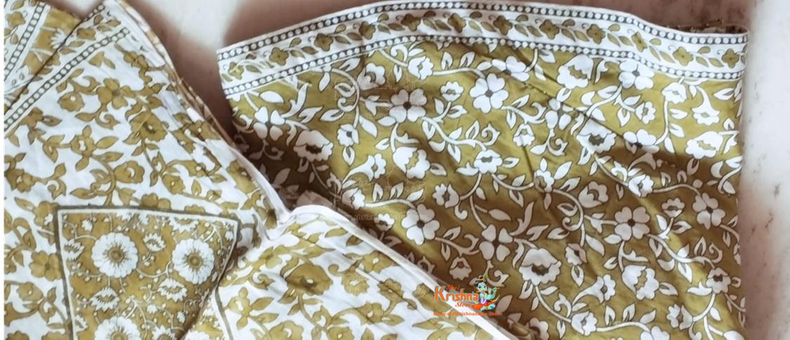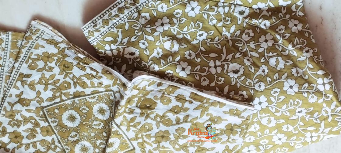 Mehandi color lily flower printed gopi skirt se tin cotton fabric for devotees