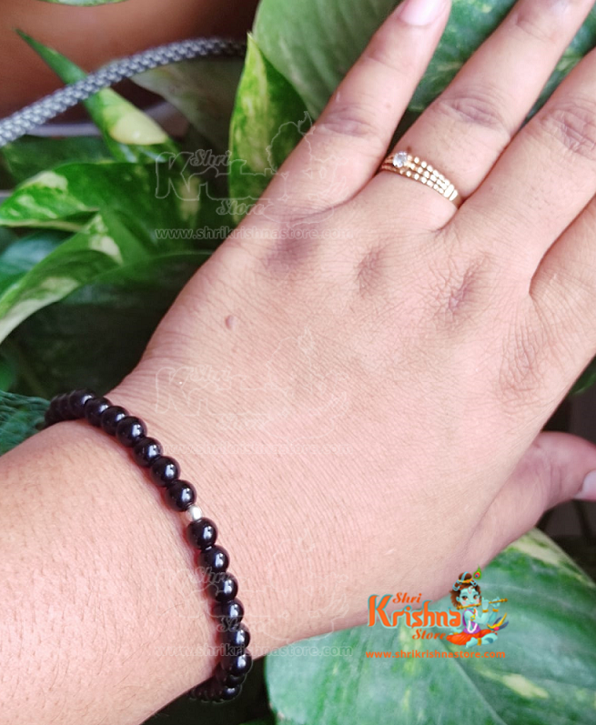 Mini Obsidian Gemstone 5mm Energy Bracelet Silver Small Middle Ball