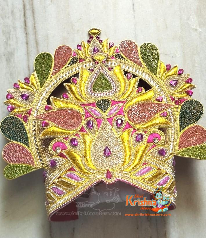 Multicolour Lotus Design Mukut Suitable for All Deity Idols
