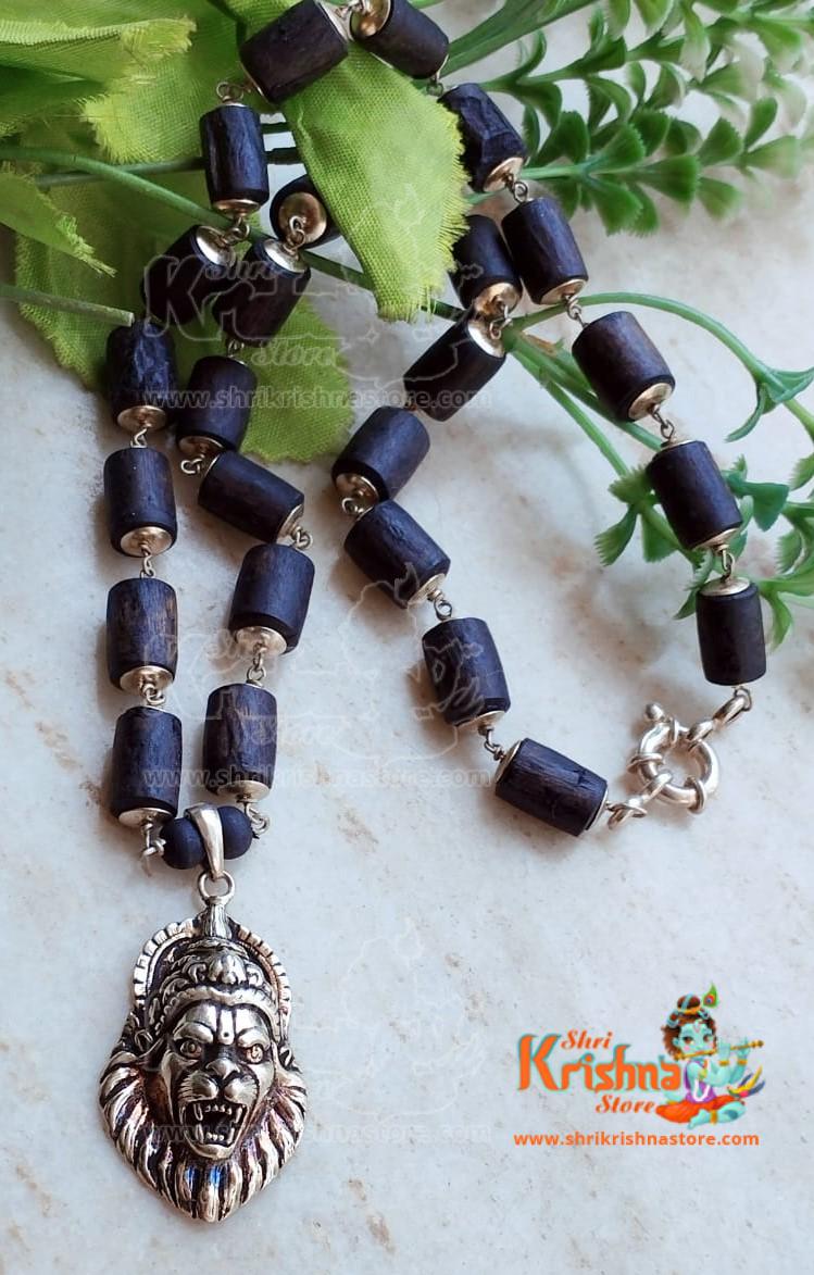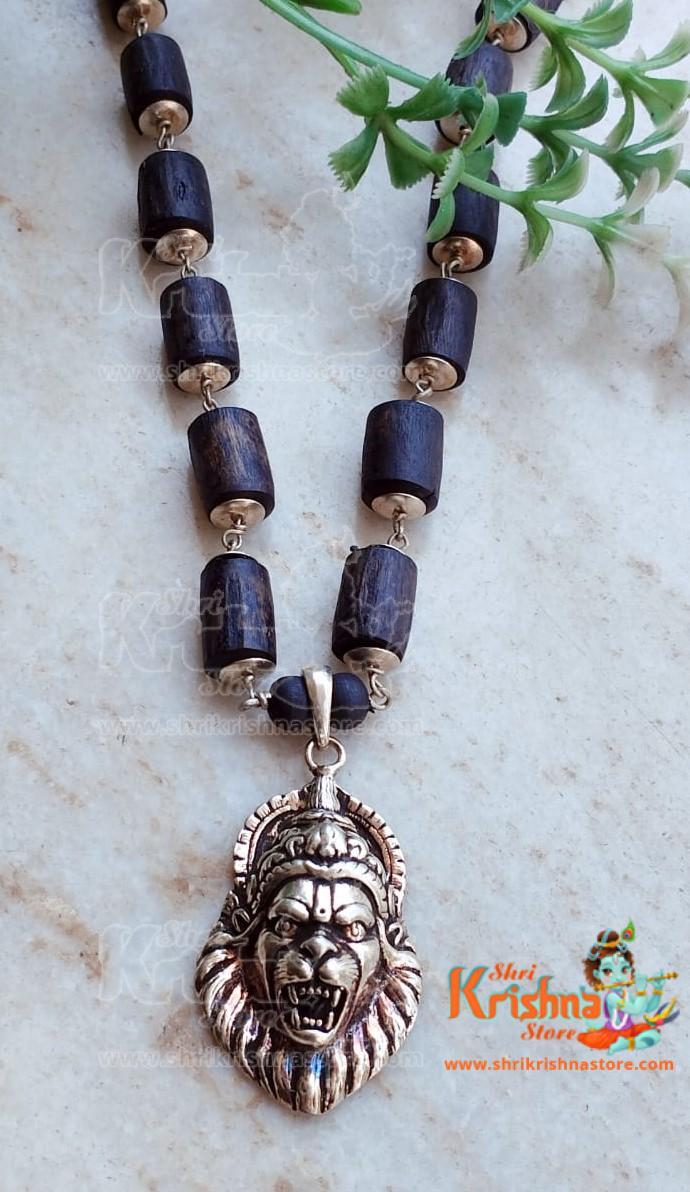 Narsimha Locket with Silver Capped Black Tulsi Beads – Super Power / Classic / Trending