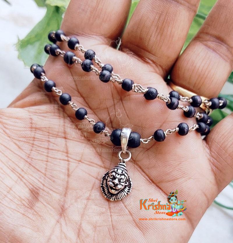 Narsingh Bhagwan Silver Locket With Tulsi Beads Mala in Silver