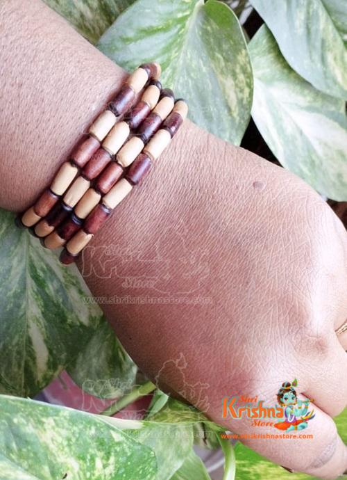 Natural Dark Brown and White Shyama Tulsi Beads in 4 Strands Bracelet