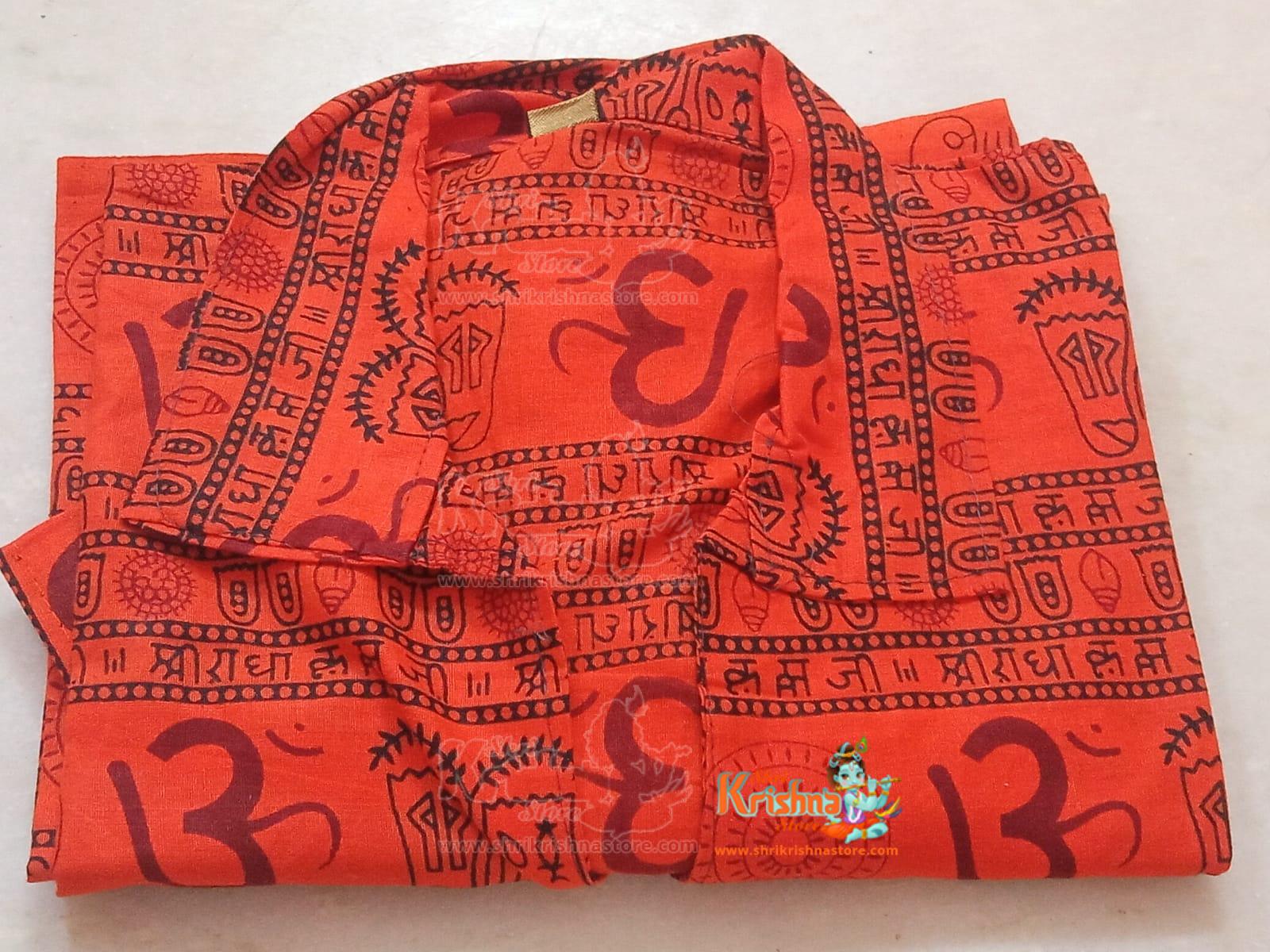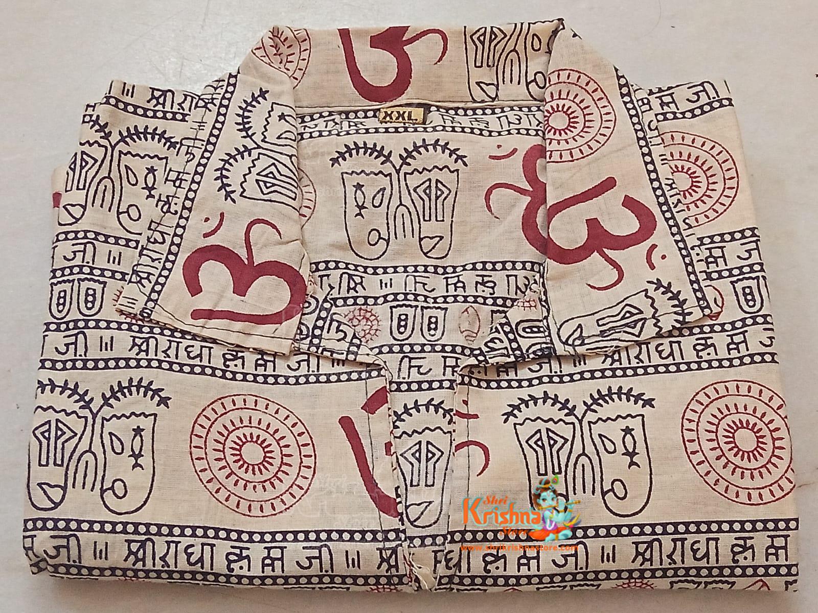 Men’s Loose Fit Traditional Cotton Om Printed Short T-Shirt for Pooja/Casual/Wedding Rituals