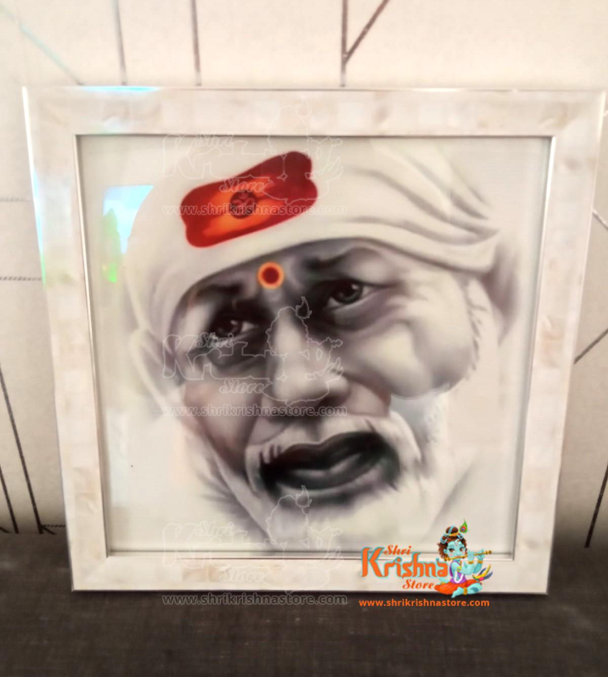 OM SAI GIFTS Shirdi Sai Baba Wall Hanging Wooden Photo Frame