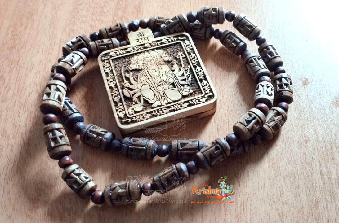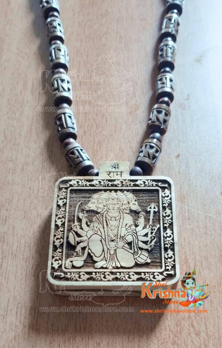 Panchmukhi Hanuman Ji With Ram Carved Tulsi Handmade Mala
