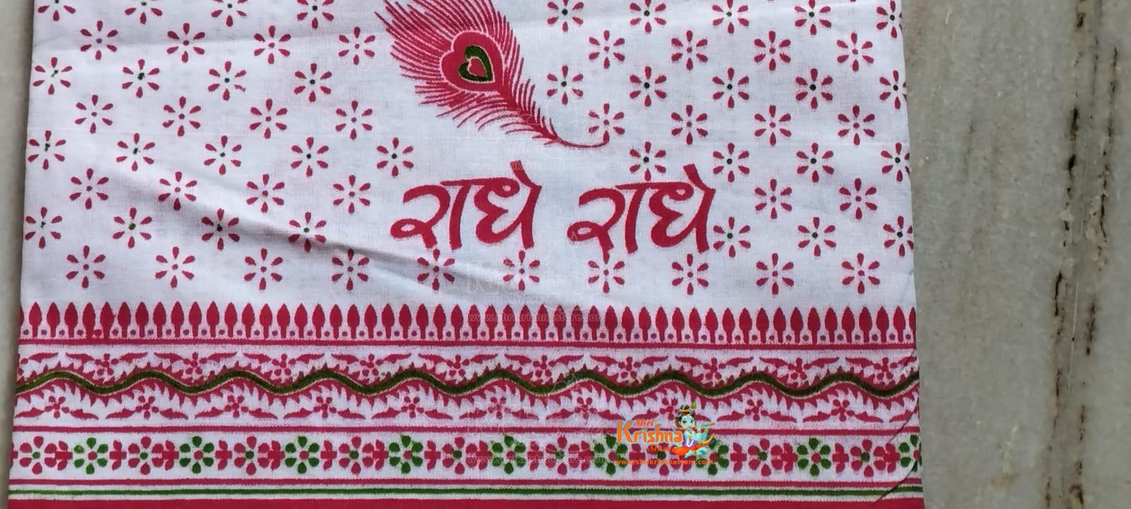 Pure Cotton Super Soft Free Size Radhe Radhe Printed Traditional Puja (worship) Dupatta/Safi/AngVastram/Gamcha