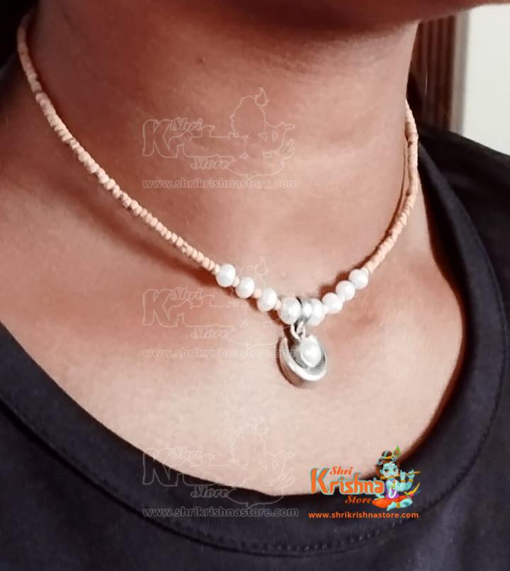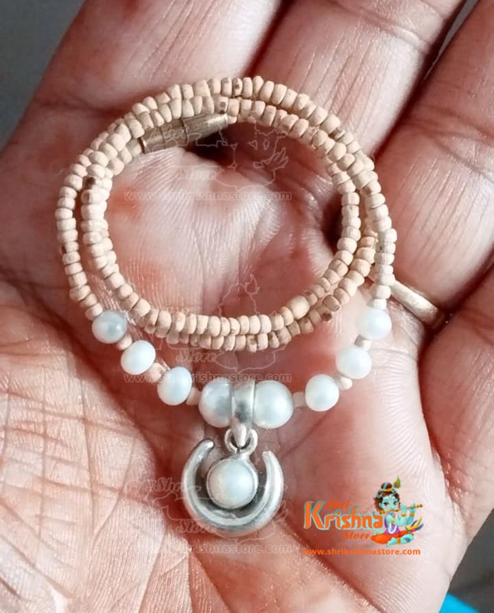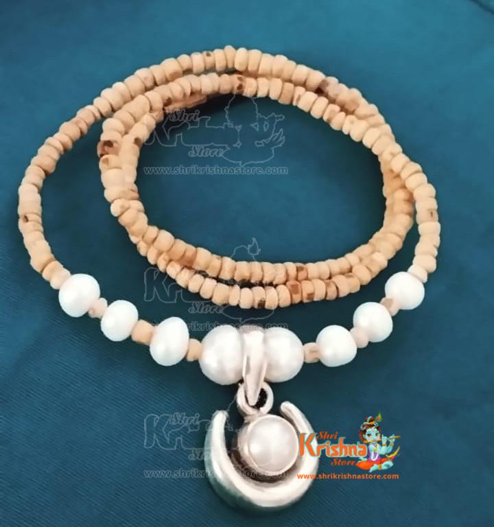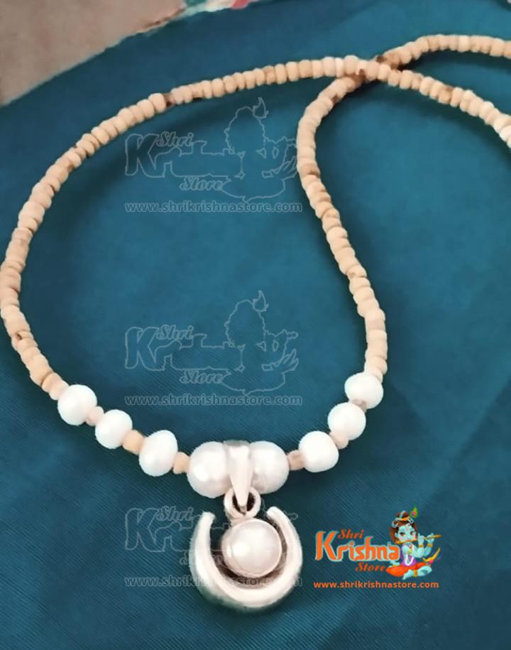 Pure 925 Silver 100% Natural Pearl Silver Moti Moon Pendent, Silver Chand Pendant Locket with tulsi mala