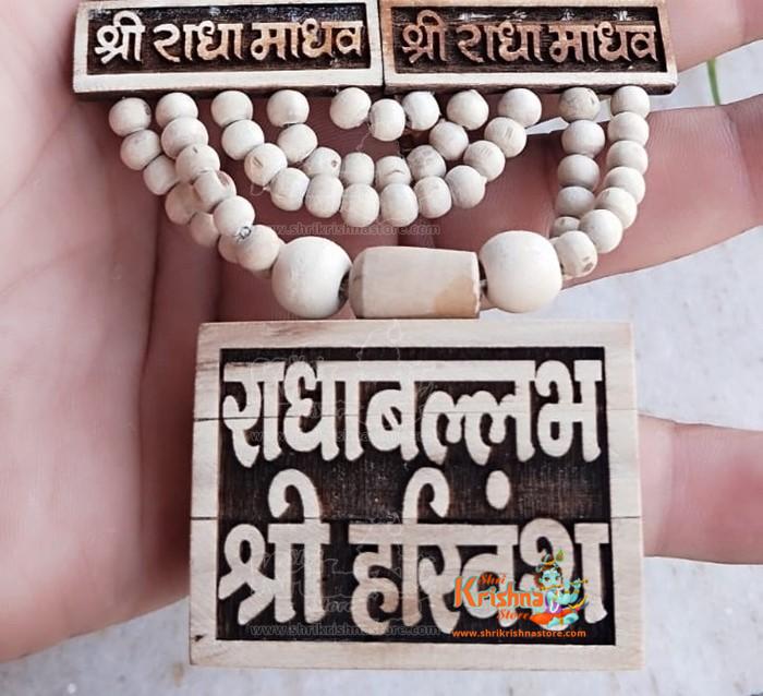 Pure Tulsi Wood Radha Vallabh shri Harivansh Bhaktmal Locket with Panch Tulsi Plate Mala