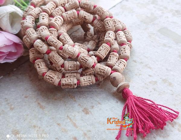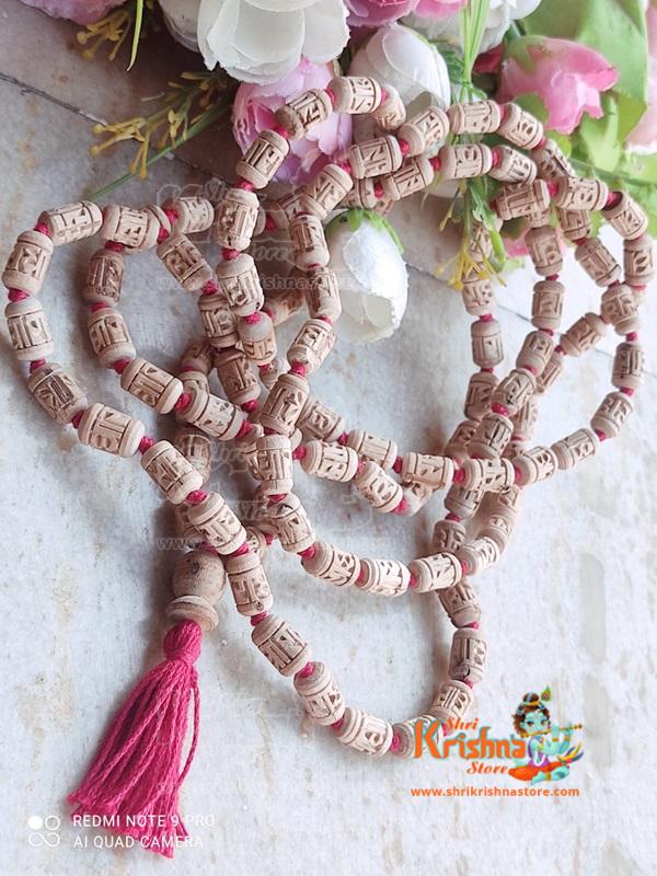 Radha Carved Shyama Tulsi Japa Beads Mala with Red Tassel