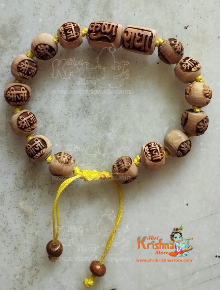 Radha Krishna jugal bracelet in tulsi beads – Adjustable