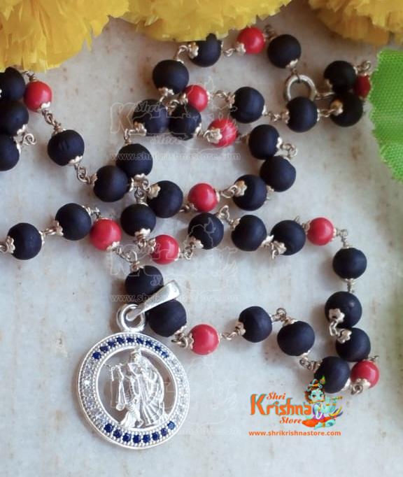 Radha Krishna Original Silver Tulasi Pendent Mala in Pretty Garland