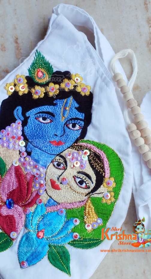 Radha Krishna Embroidery Japa Bead Bag – Premium