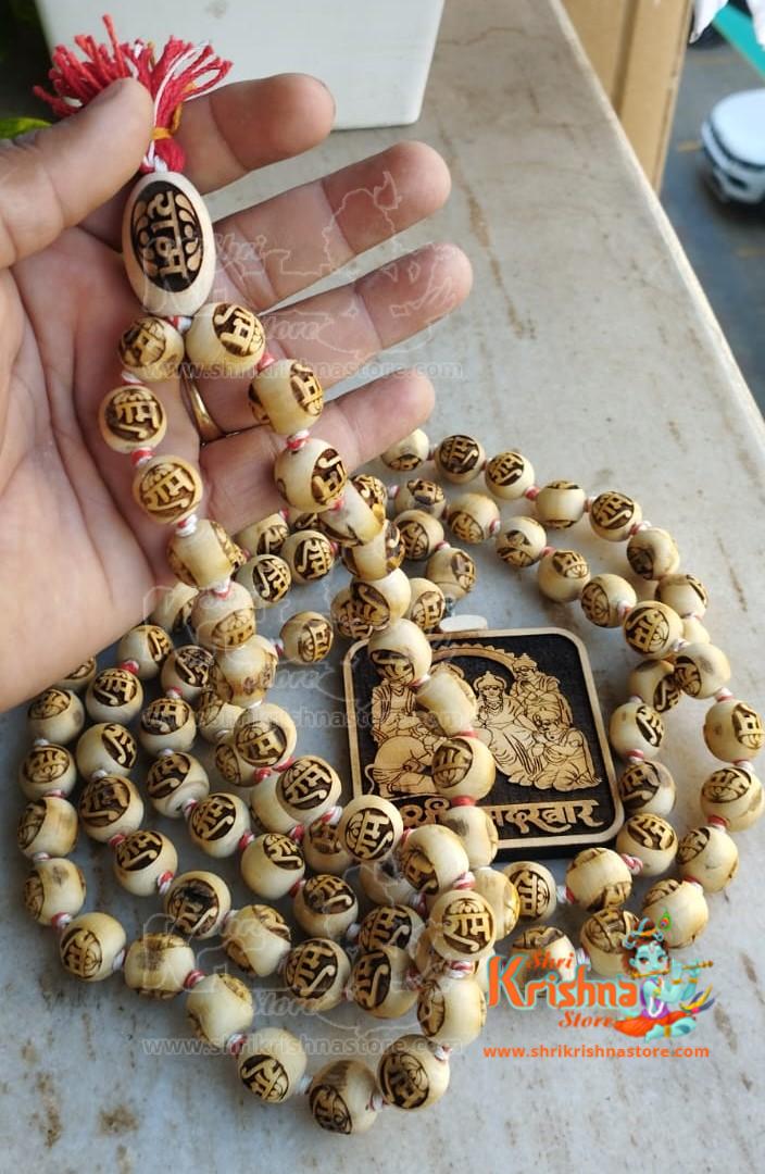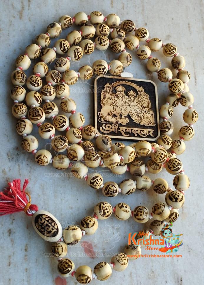 Ram Carved Big Tulsi 108 Beads Japa Mala with Ramdarbar Locket Mala